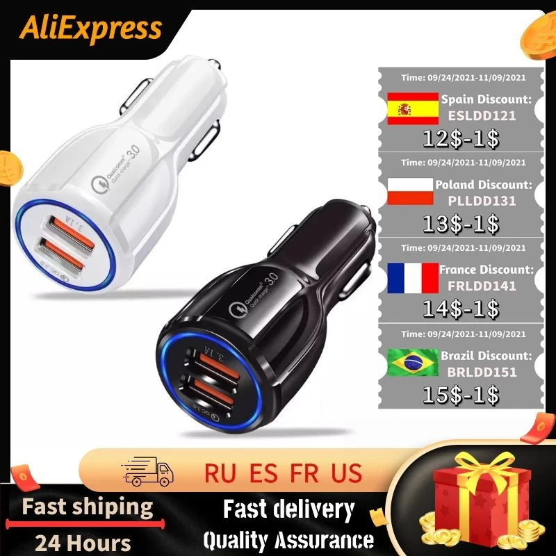 Автомобильное зарядное устройство 5V 3.1A, 2 порта, быстрое зарядное устройство, адаптер для прикуривателя для Samsung Huawei iphone 13 12 Plus, автомобильные аксессуары