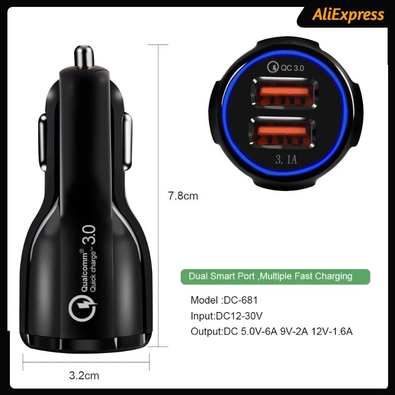 Тип товара: автомобильное зарядное устройство USB, зарядное устройство для путешествий