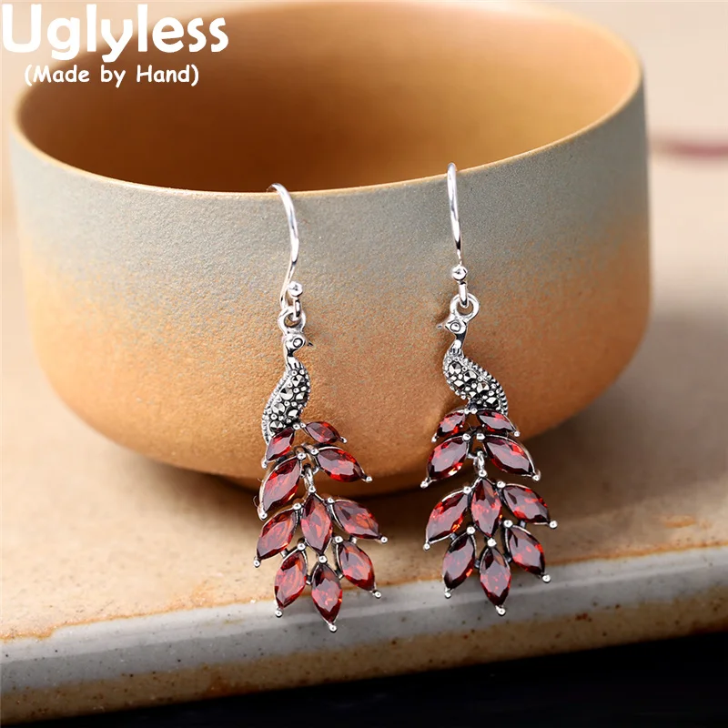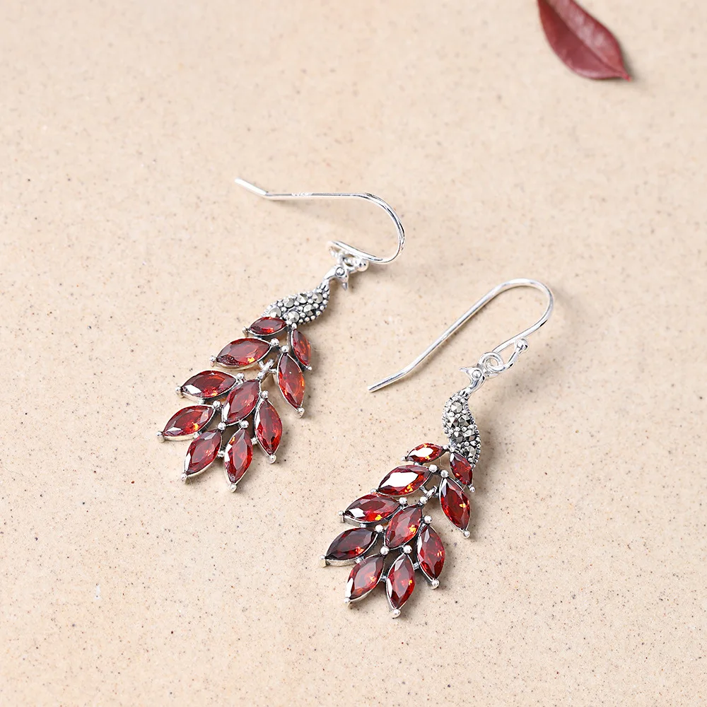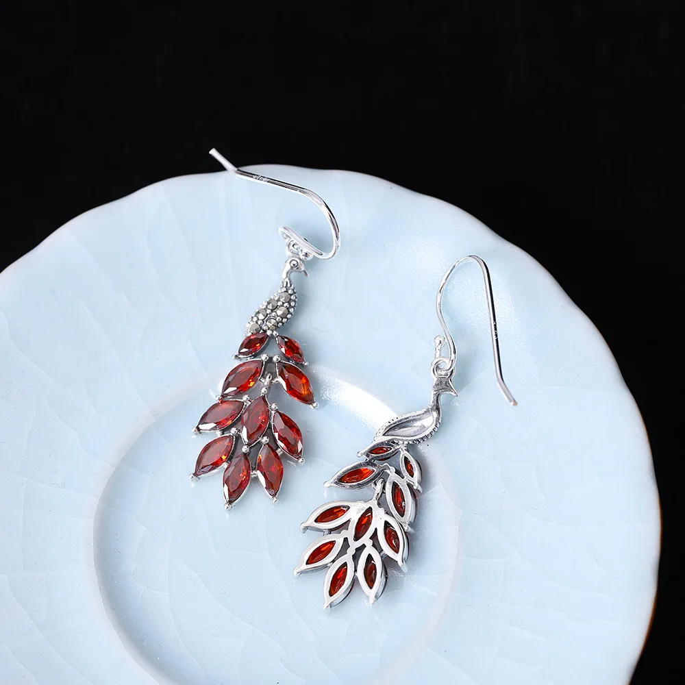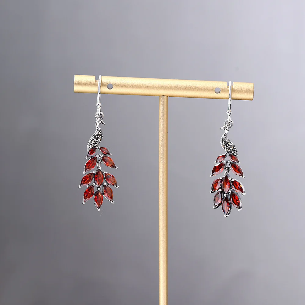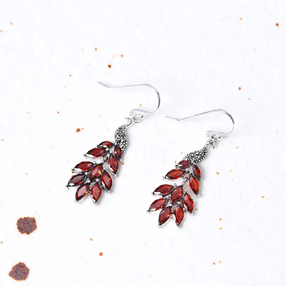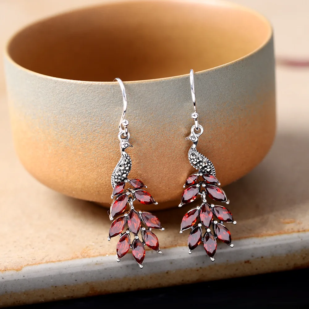 Женские серьги из серебра серьги в виде павлина пробы, с красным гранатом
