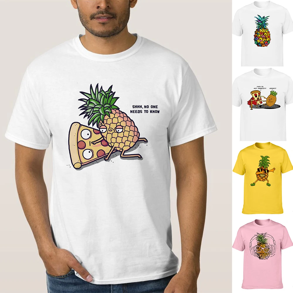 Мужская одежда 2020 ананас для пиццы с фруктовым принтом смешной эстетический рубашка для отдыха с коротким рукавом и О-образным вырезом Футболка уличная принтовые тройники