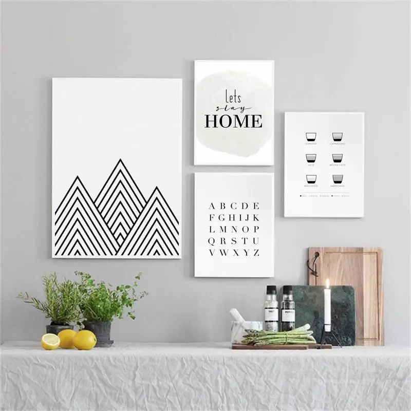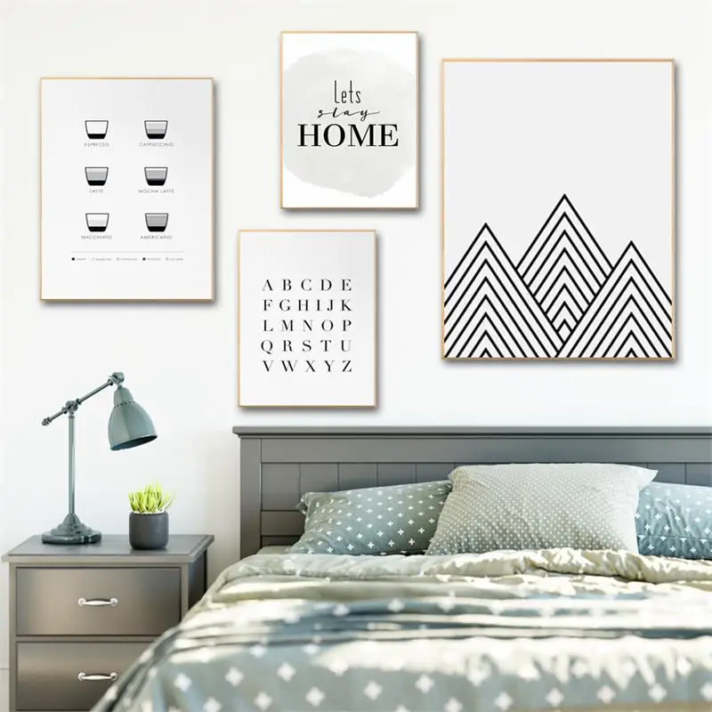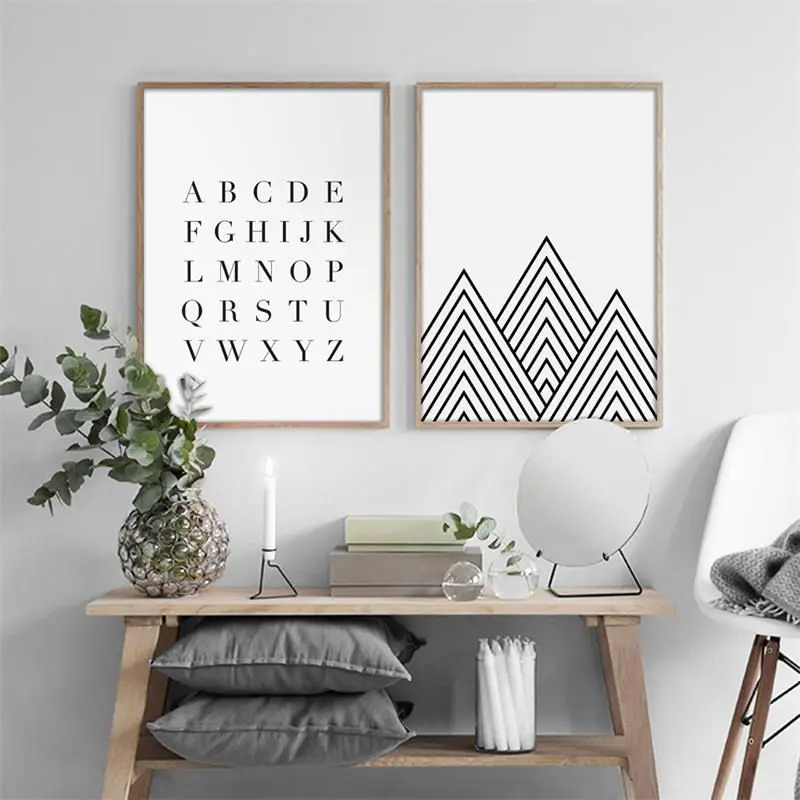 Минималистичная Картина на холсте с текстом, 26 букв, настенные картины для гостиной, современные постеры и принты, линия гор, пик, домашний декор
