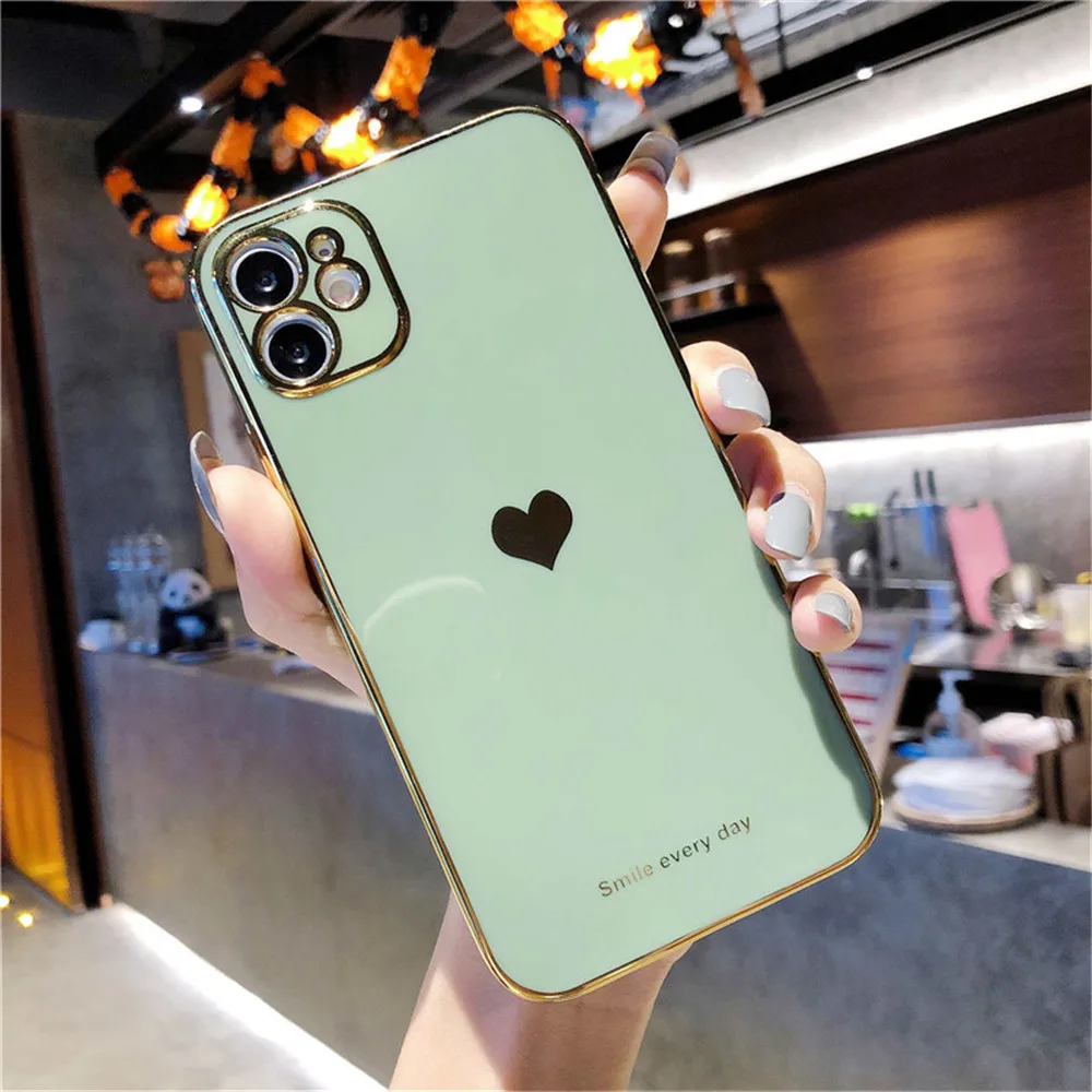 FeatureLuxury Plating Solid Color Love Heart Pattern Silicone Capa Fundas