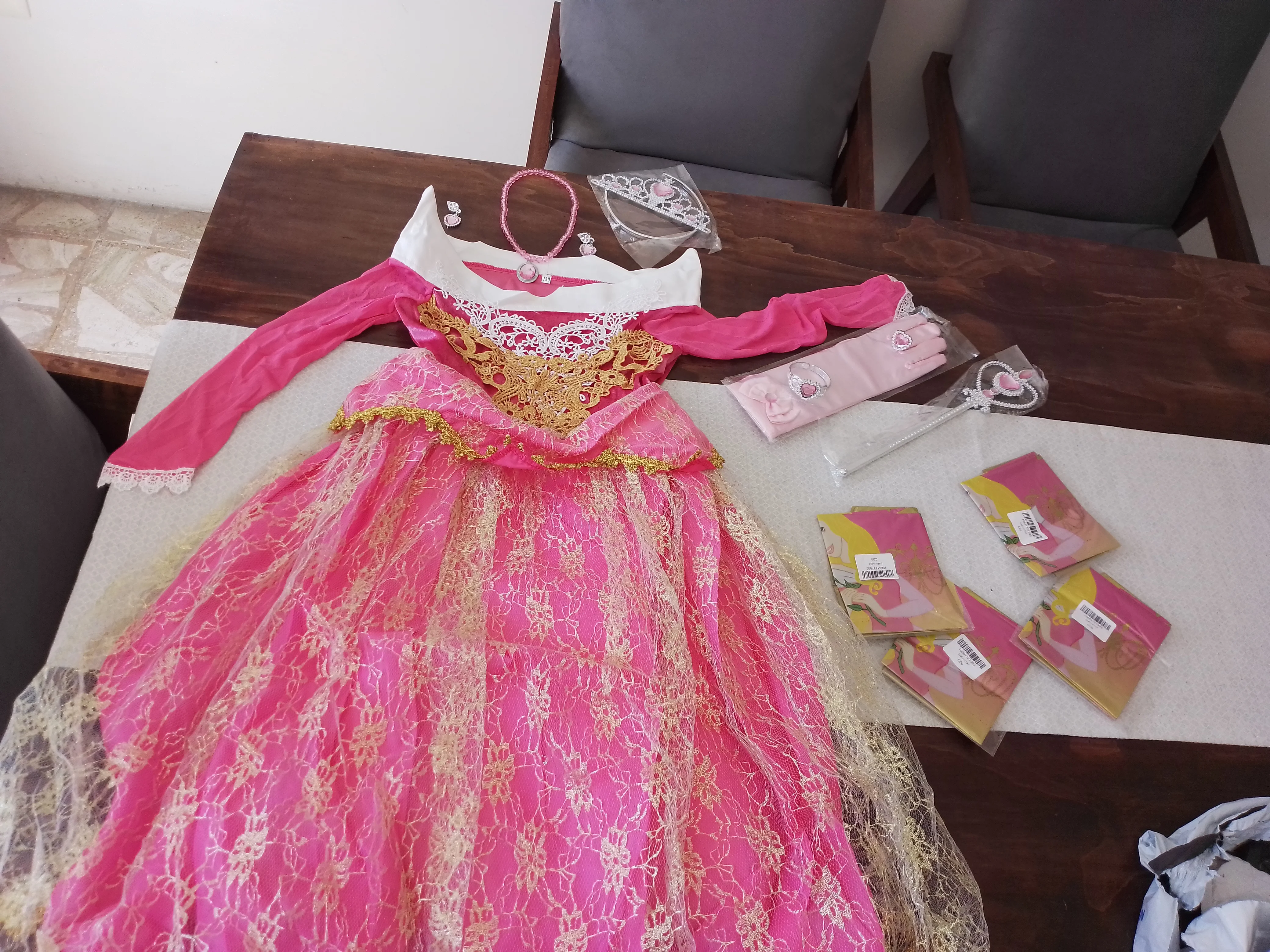 Он сказал, что прибудет через два месяца, и он прибыл через две недели. Все прибыло завершено, как я и просил. Я должен признать, что он прибыл с двумя деталями, одна часть Золотой Жемчужины внизу платья немного оторвалась от одной части, и мини-крючок из тонкой ткани, которая покрывает руки. Но я не жалуюсь, потому что это две минимальные ремонты, что шов или я могу сделать без каких-либо затруднений. Честно говоря, я бы купил в моем городе вдвое дороже, так что это был отличный вариант купить его таким способом. Я очень доволен своей покупкой.