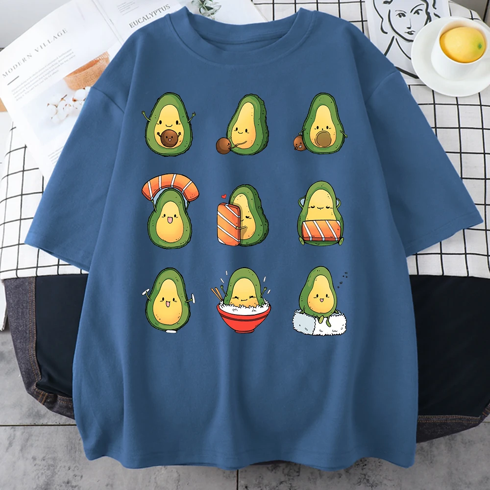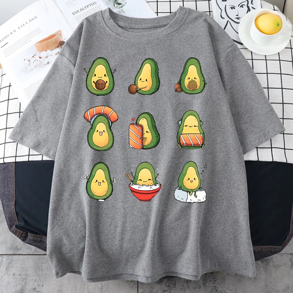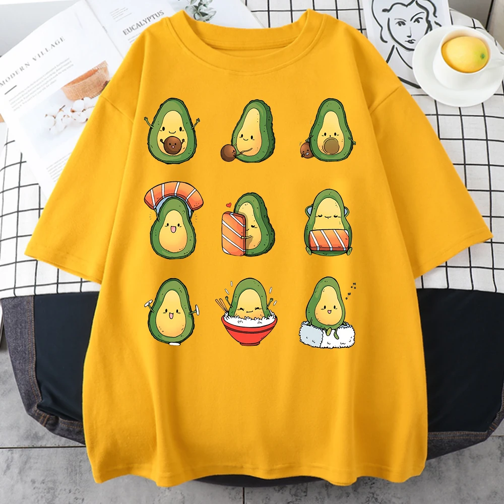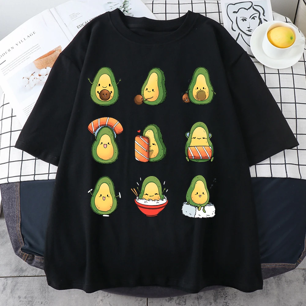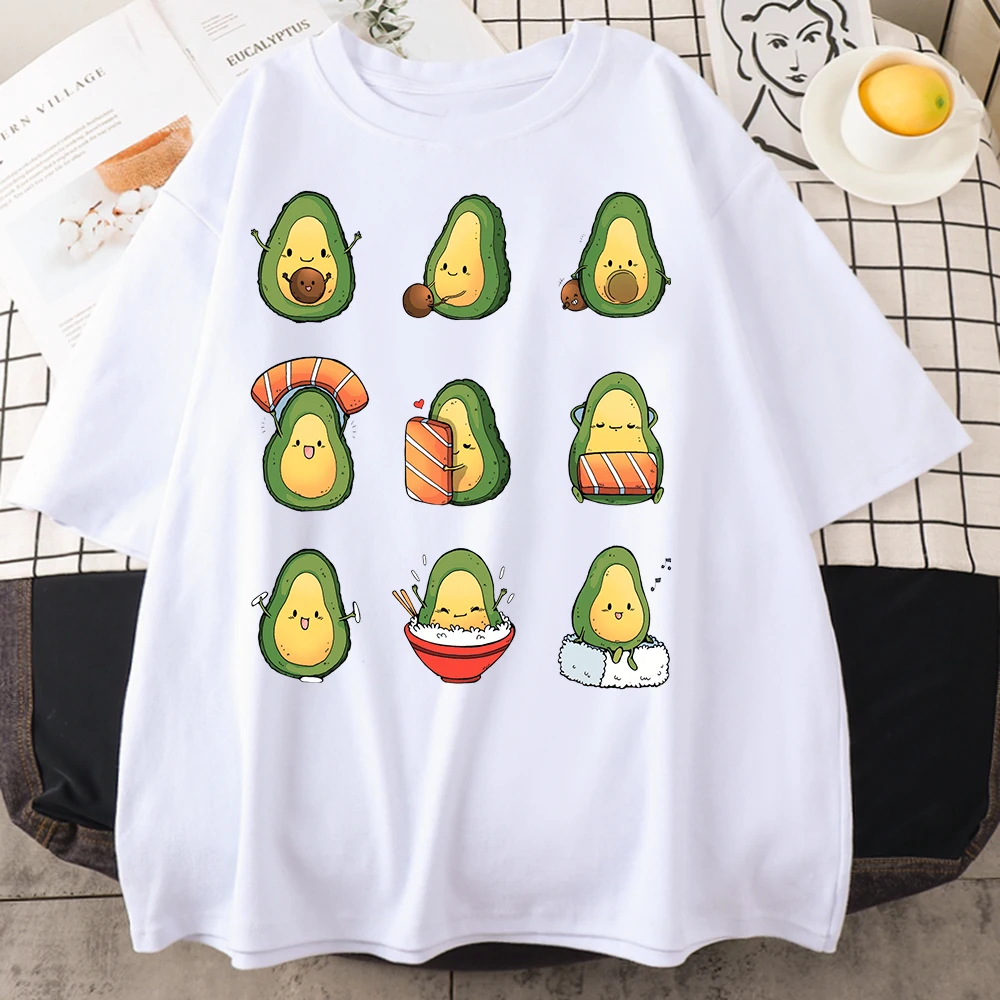 Аниме красоты авокадо; Красивый комплект одежды; Футболка с принтом для женщин брендовые свободные футболки с круглым вырезом и мультипликационным принтом, новый рисунок на топах бренд женской одежды