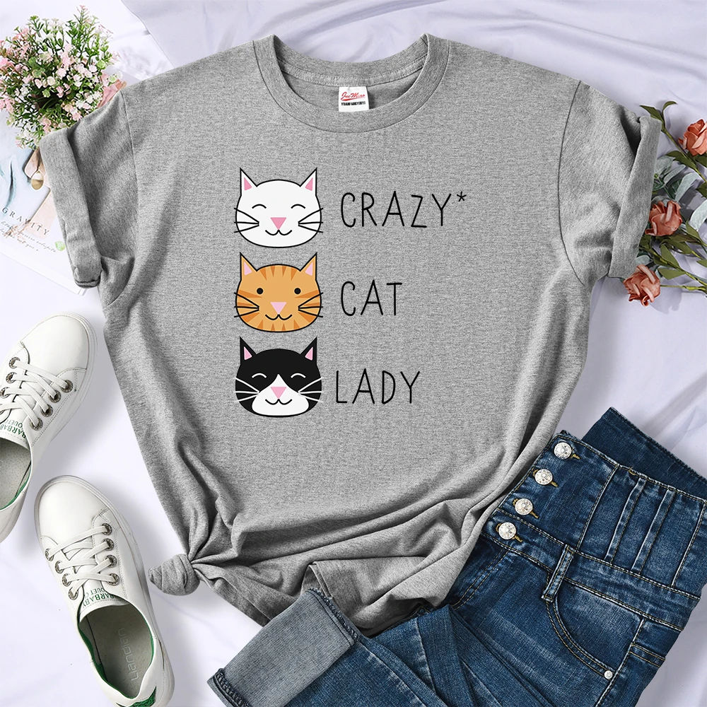 Футболка с рисунком кота, женская футболка с круглым вырезом, прост...
