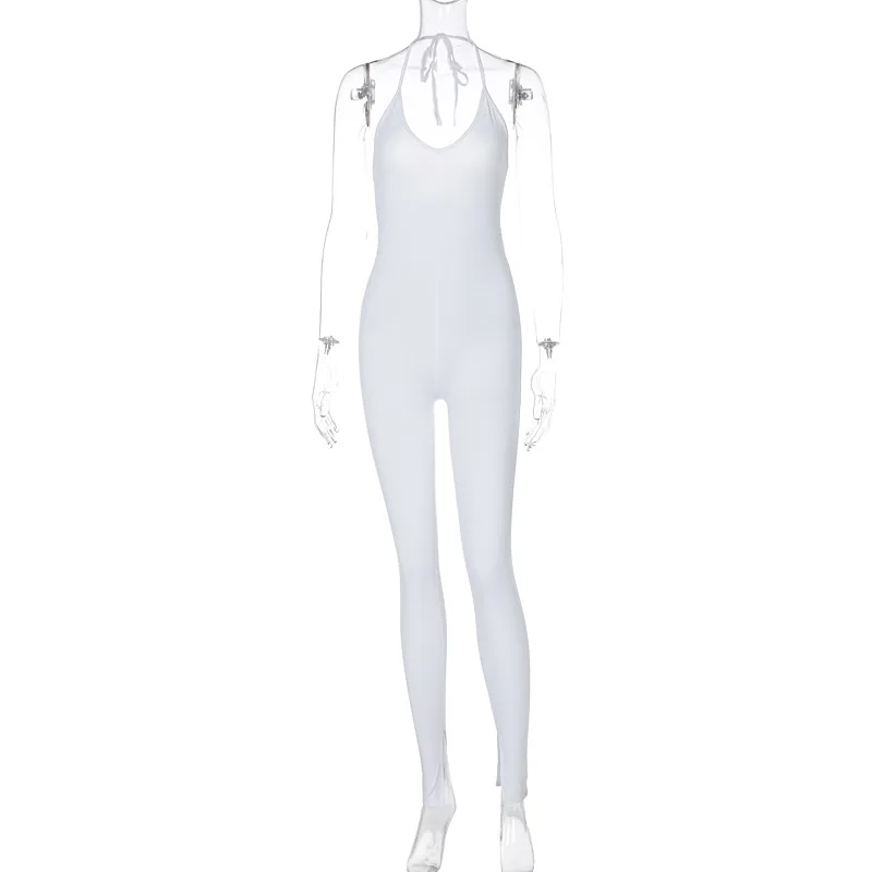 Комбинезон BOOFEENAA Женский, белый, с открытой спиной, с лямкой через шею, 2021, C70-BD20
