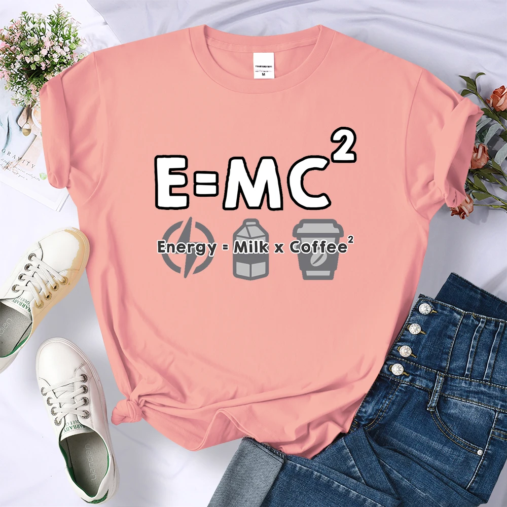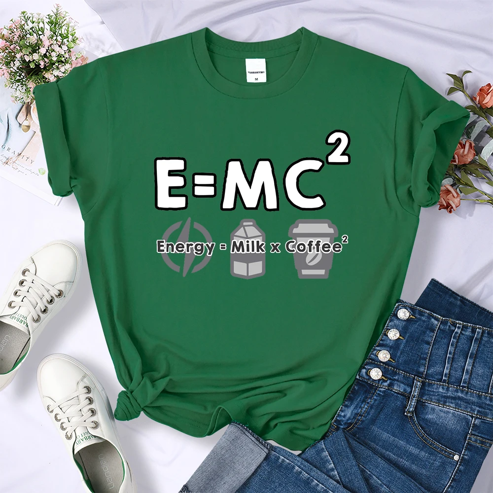 Женская футболка в стиле Харадзюку Energy = milk + coffee, свободная летняя футболка, дышащие женские топы большого размера