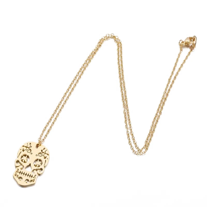 Женское винтажное ожерелье с подвеской в виде скелета, национальное ажурное резное ожерелье, Мексиканский Череп из нержавеющей стали, ювелирные изделия в подарок