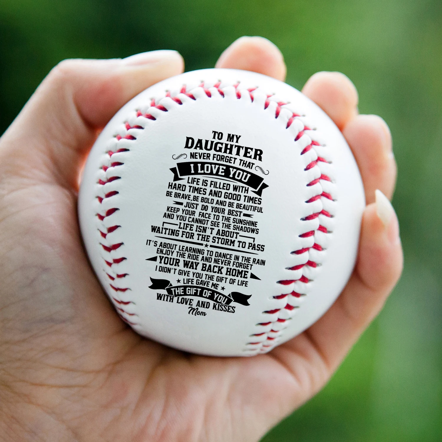 Вы ищете уникальный подарок для вашей дочери? Не смотрите дальше! Этот печатный Софтбол идеален! Подарок, который он будет ценить на всю жизнь! Это красивый софтбол с содержательным сообщением, напечатанным на мяче, который помогает ему длиться навсегда. Сделайте идеальный подарок для особых случаев, таких как день рождения, юбилей, Рождество и т. д. Удивите его и дайте ему знать, как сильно он любит этот прекрасный подарок.