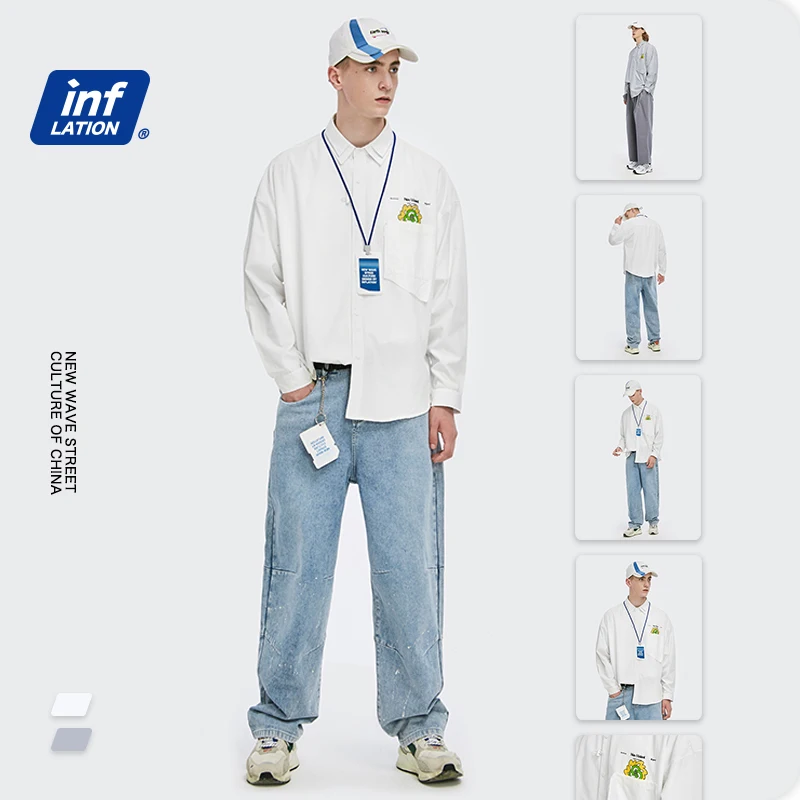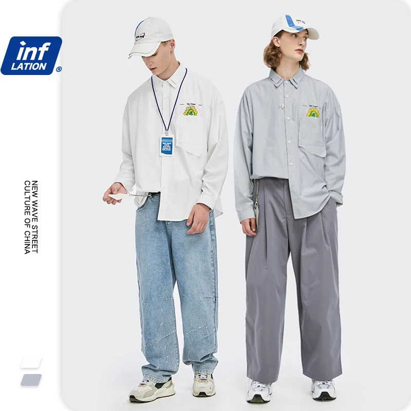 Рубашка мужская инфляционная в стиле Харадзюку, полосатая Повседневная Свободная рубашка с длинным рукавом, белая рубашка на пуговицах для пар, 2021 W, весна 2090