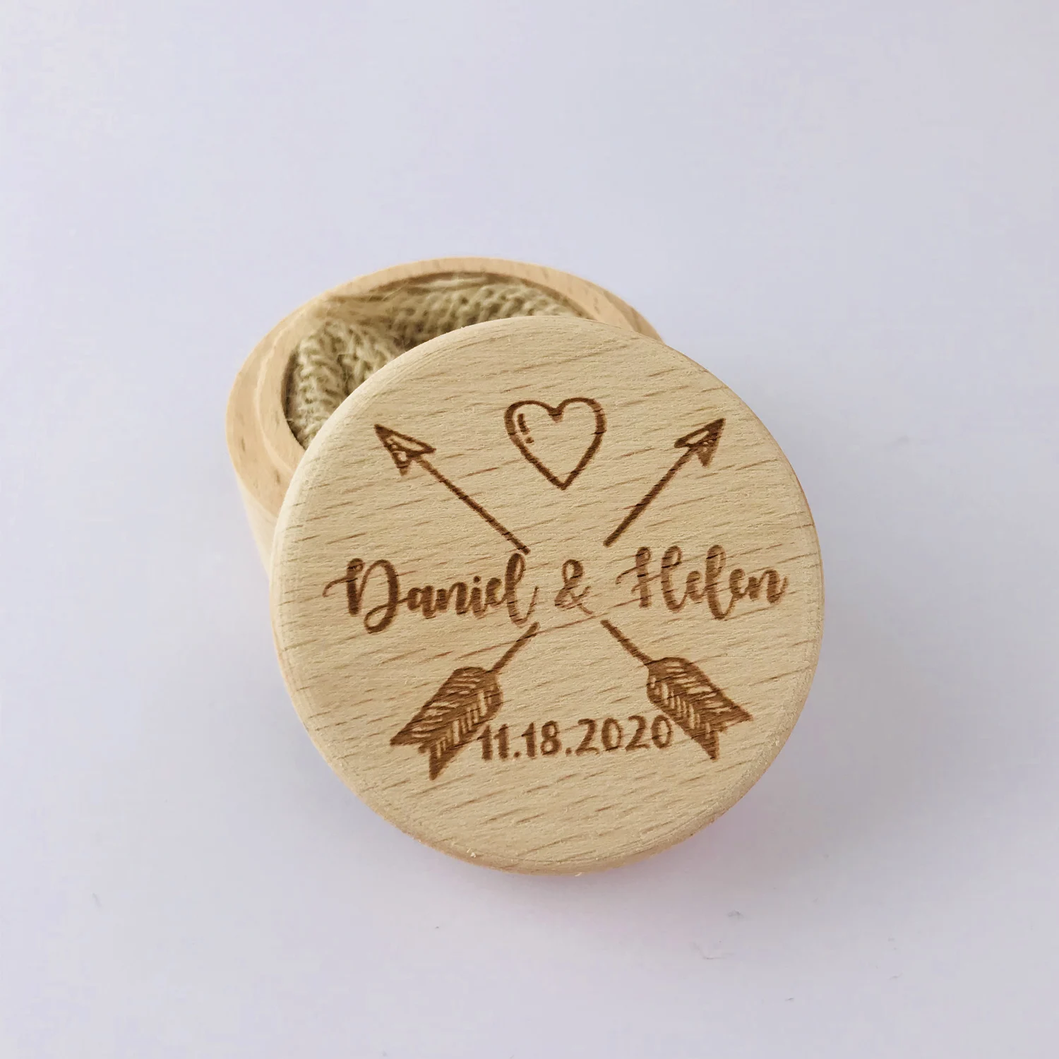 Деревянная коробка для колец с именами и датой на заказ, круглая коробка с гравировкой, подарок для пары