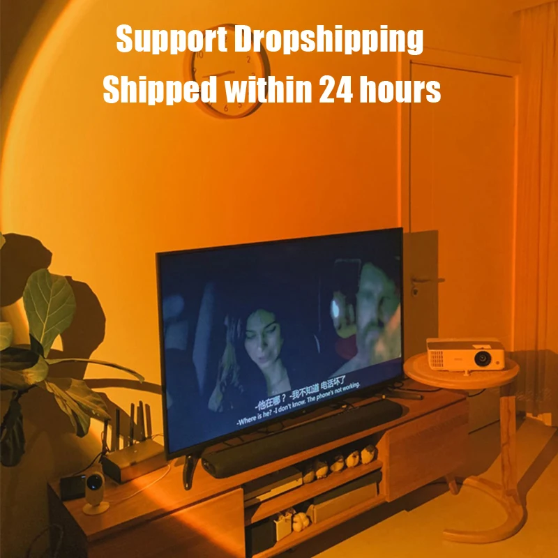 Светильник С закатом по USB, атмосферный светильник, фон для прямых трансляций, проектор, Радужный ночник, домашнее украшение для спальни, кофейного магазина