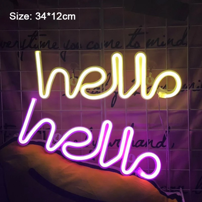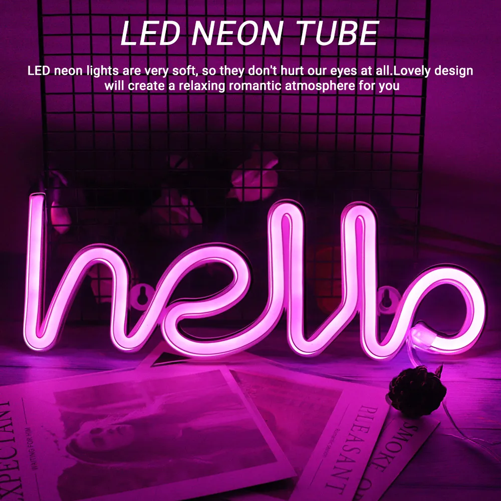 Неоновый светодиодный светильник Hello, настенный светильник, приветственные вывески, домашний декор, ночник вечерние ринка, свадьба, окно, магазин, питание от аккумулятора и USB