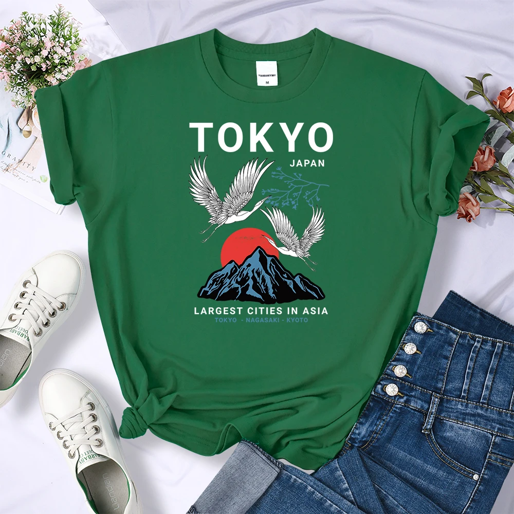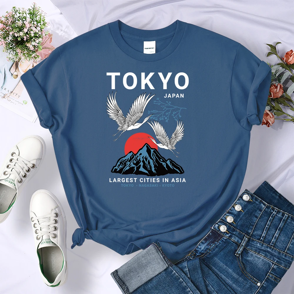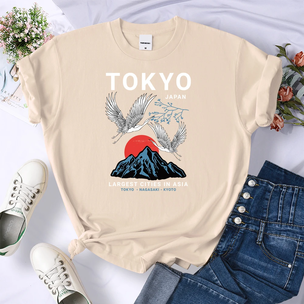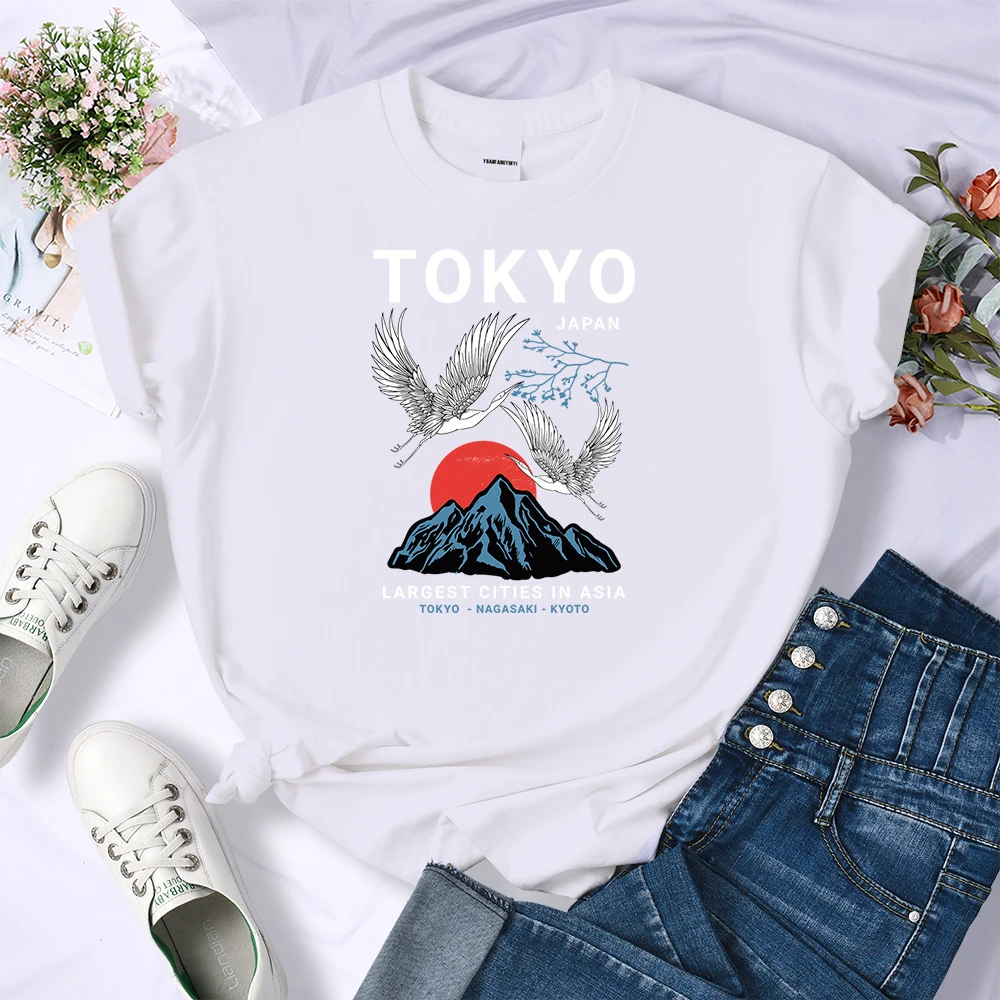 Брендовая футболка с принтом Tokyo Crane, японские мультфильмы, женские модные футболки, повседневные дышащие топы, милая футболка с рисунком, женская одежда