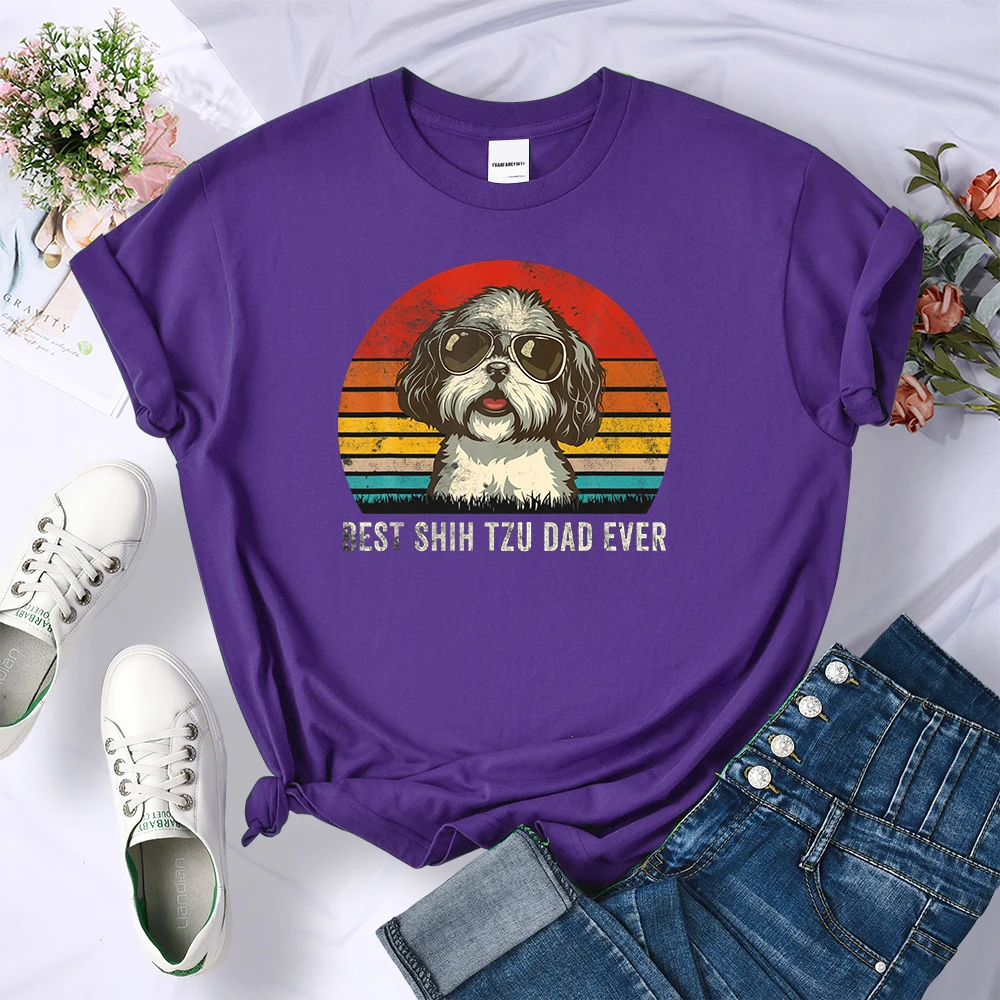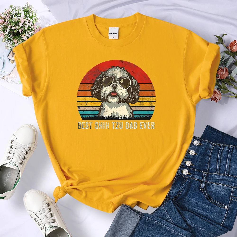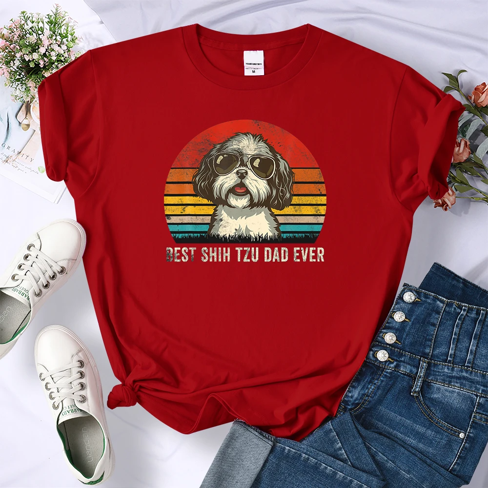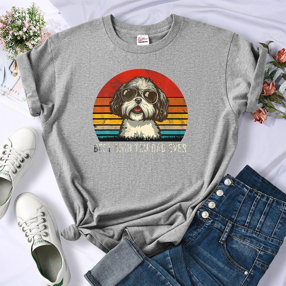 Лучшая модная женская футболка Shih Tzu Dad Ever с собакой, модные топы в стиле оверсайз, летняя простая футболка, одежда, брендовая футболка в стиле Харадзюку