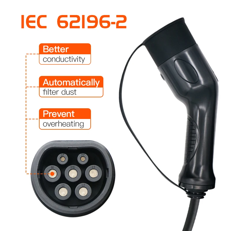 1. Разъем для зарядки: 7 контактов (соответствует стандарту IEC 62196-2)2. Разъем питания: штепсельная вилка Schuko3. Длина шнура зарядного устройства: 5 м4. Номинальное Напряжение: 220/250V5. Номинальный ток: 16A6. Рабочая температура: -30 ℃ ~ + 55 ℃7. Рекомендуется использовать в помещении8. CE признанный компонент
