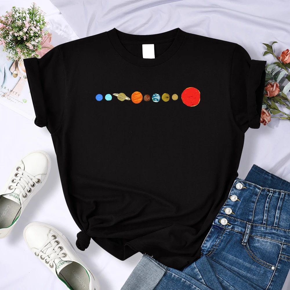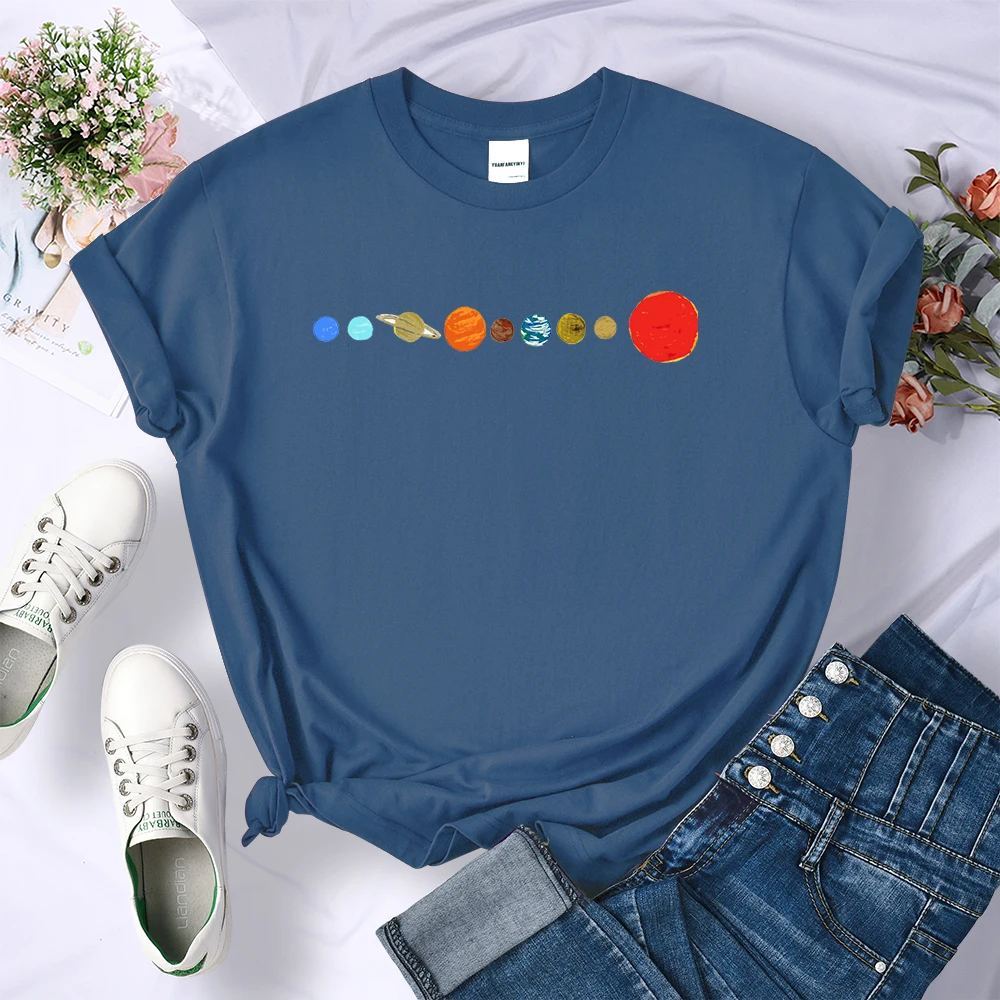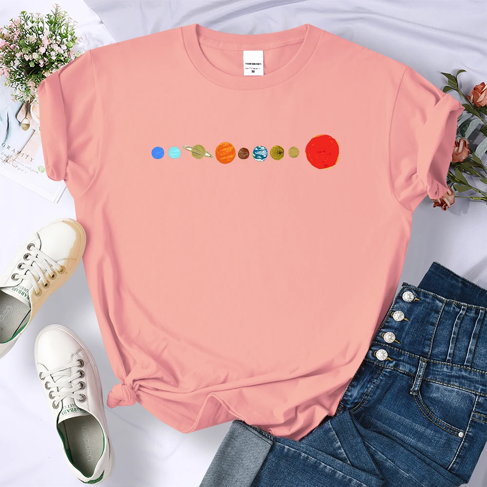 Футболка женская с изображением восьми планет Солнечной системы, мо...
