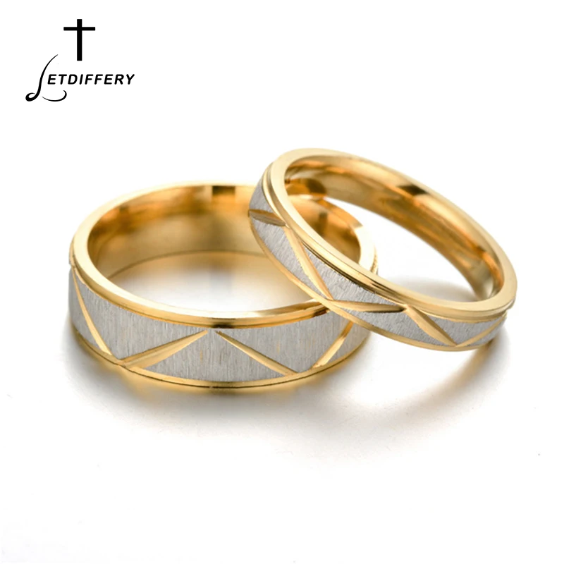 Золотые обручальные кольца letdiffy из нержавеющей стали для влюбленных, 46 мм, женские и мужские парные кольца, Прямая поставка