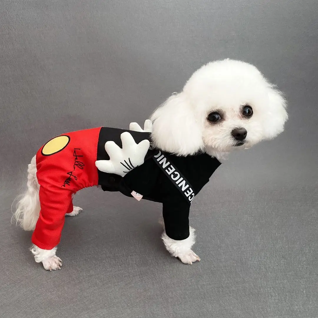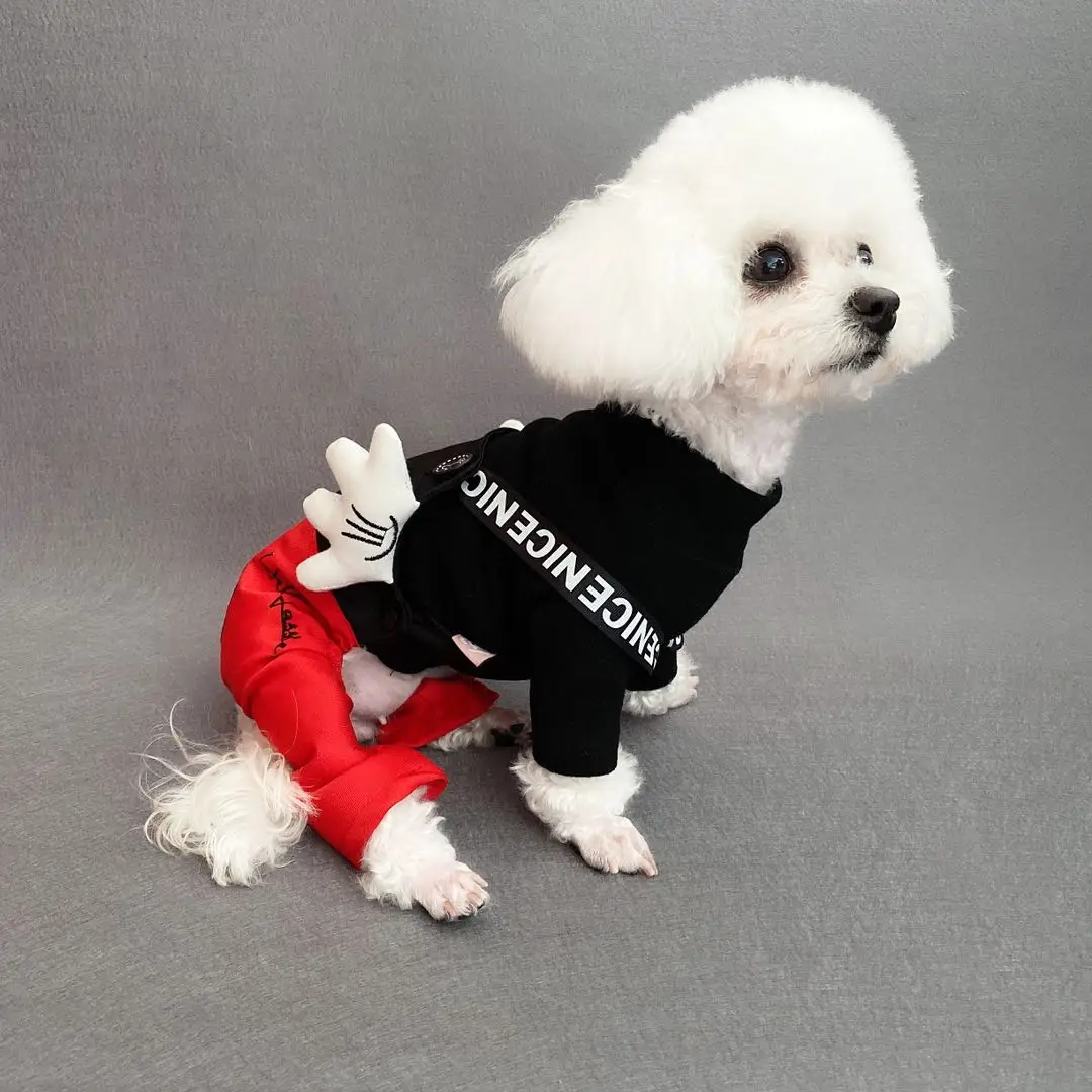 Милый комбинезон для собак, флисовый комбинезон черного и красного цветов, весенне-летний комбинезон, одежда для Мопсов среднего и маленького размера, домашнее животное чихуахуа