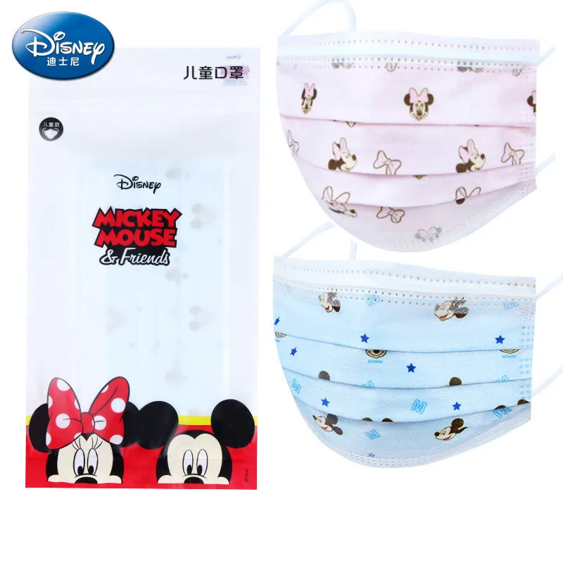Детская трехслойная маска для лица Disney, одноразовые Мультяшные принты, розоваясиняя детская маска, маска для рта, защитное покрытие для лица