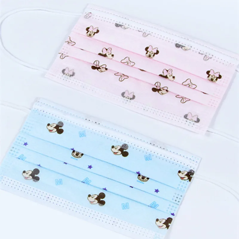 Диснеевская маска для лица детский 3-слойный фильтр одноразовые Мультяшные принты маскн розовый/синий детский маскарадный рот маски покрытие лицо щит