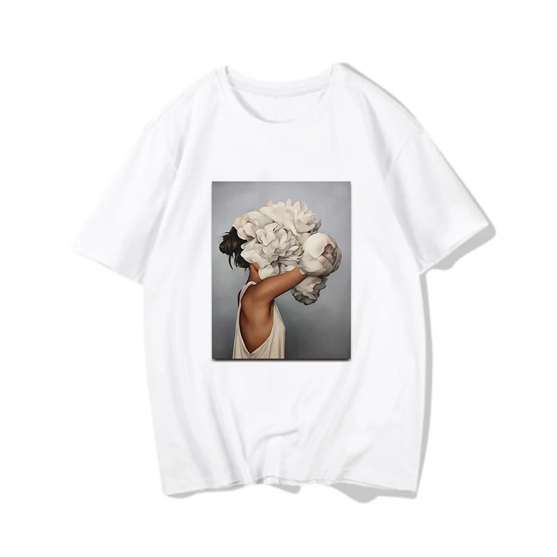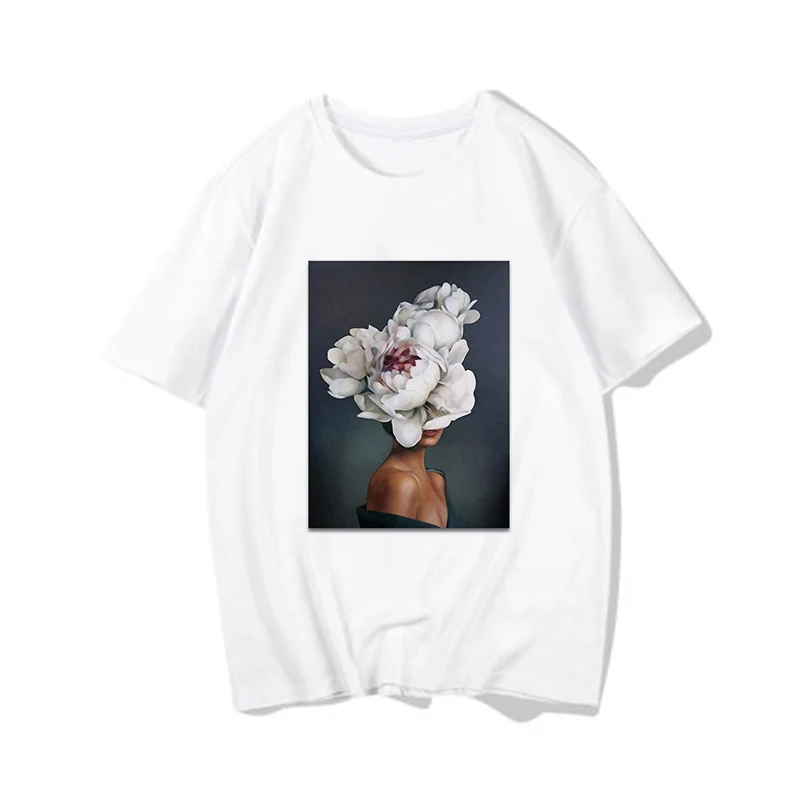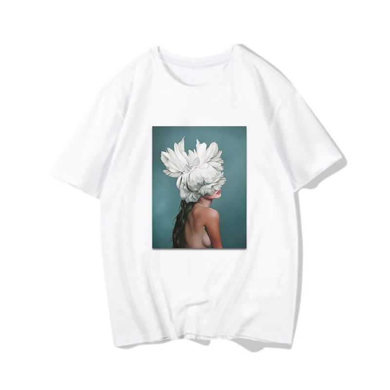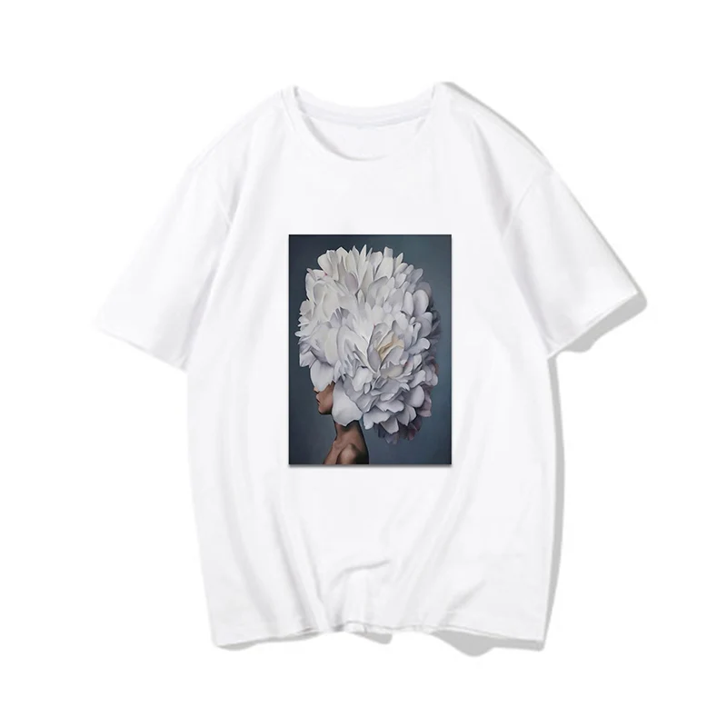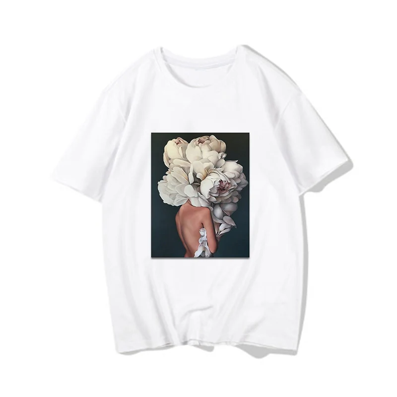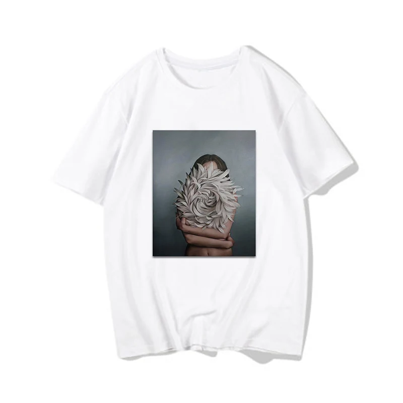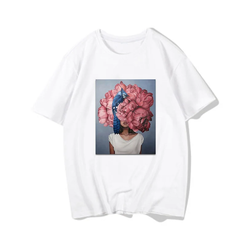 Женские футболки, Сексуальная футболка с принтом цветов и перьев, женская летняя рубашка с коротким рукавом, топы большого размера в стиле Харадзюку, женская футболка, одежда