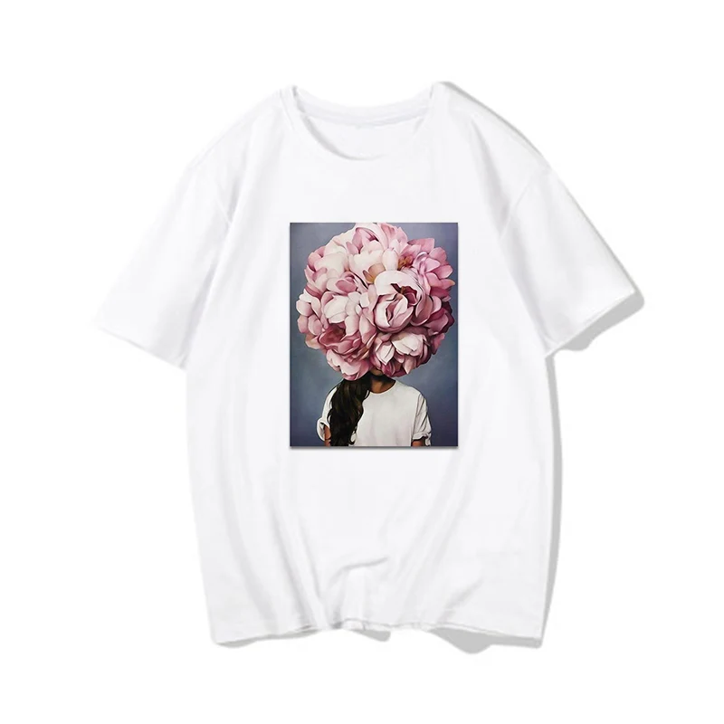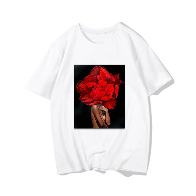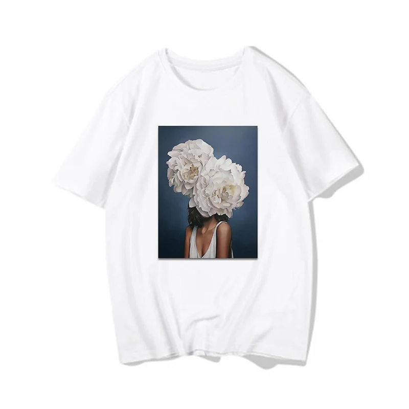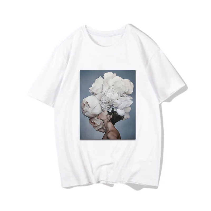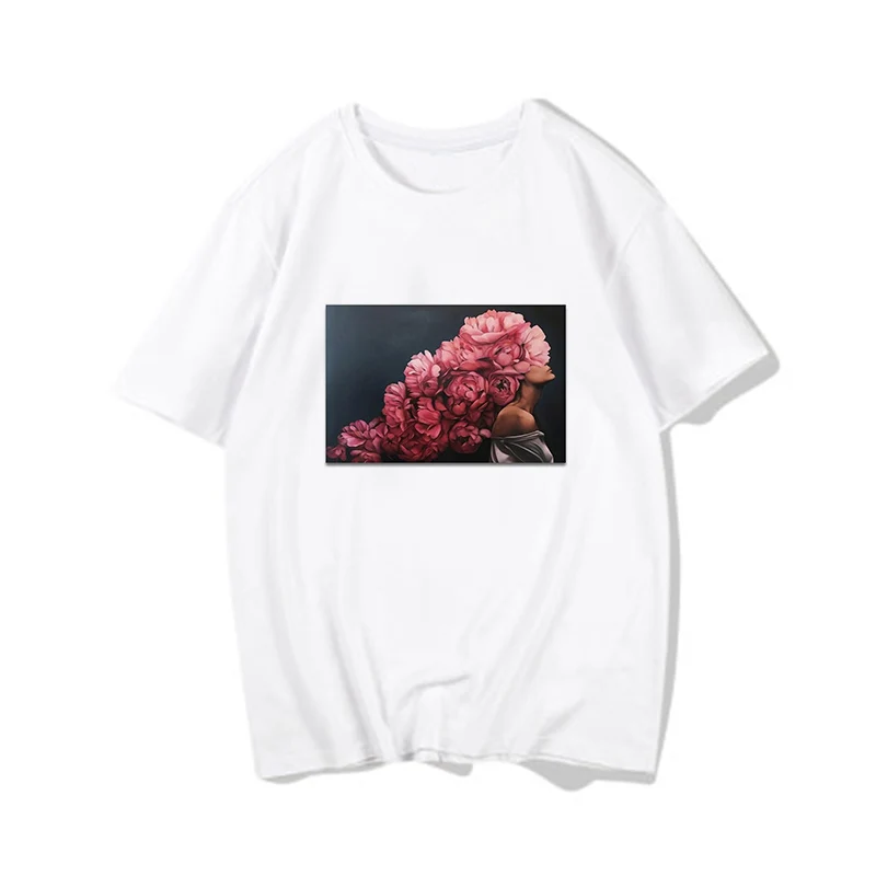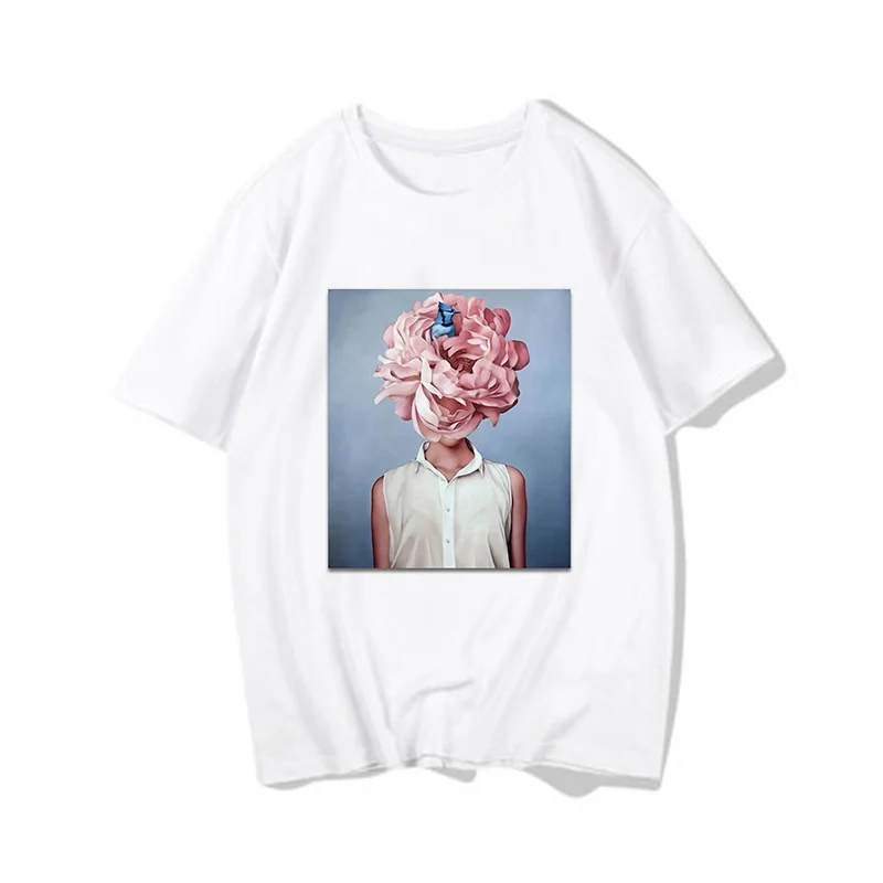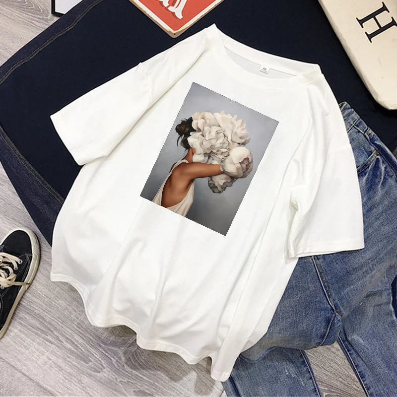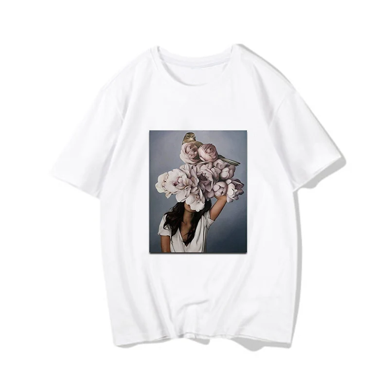 Женские футболки, Сексуальная футболка с принтом цветов и перьев, женская летняя рубашка с коротким рукавом, топы большого размера в стиле Харадзюку, женская футболка, одежда