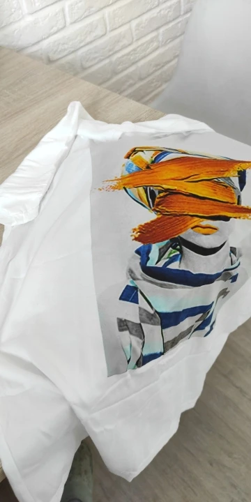 Я совсем не удовлетворен. Рисунок размыт! Материал футболки очень искусственный. Размер не подходит.