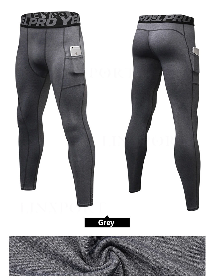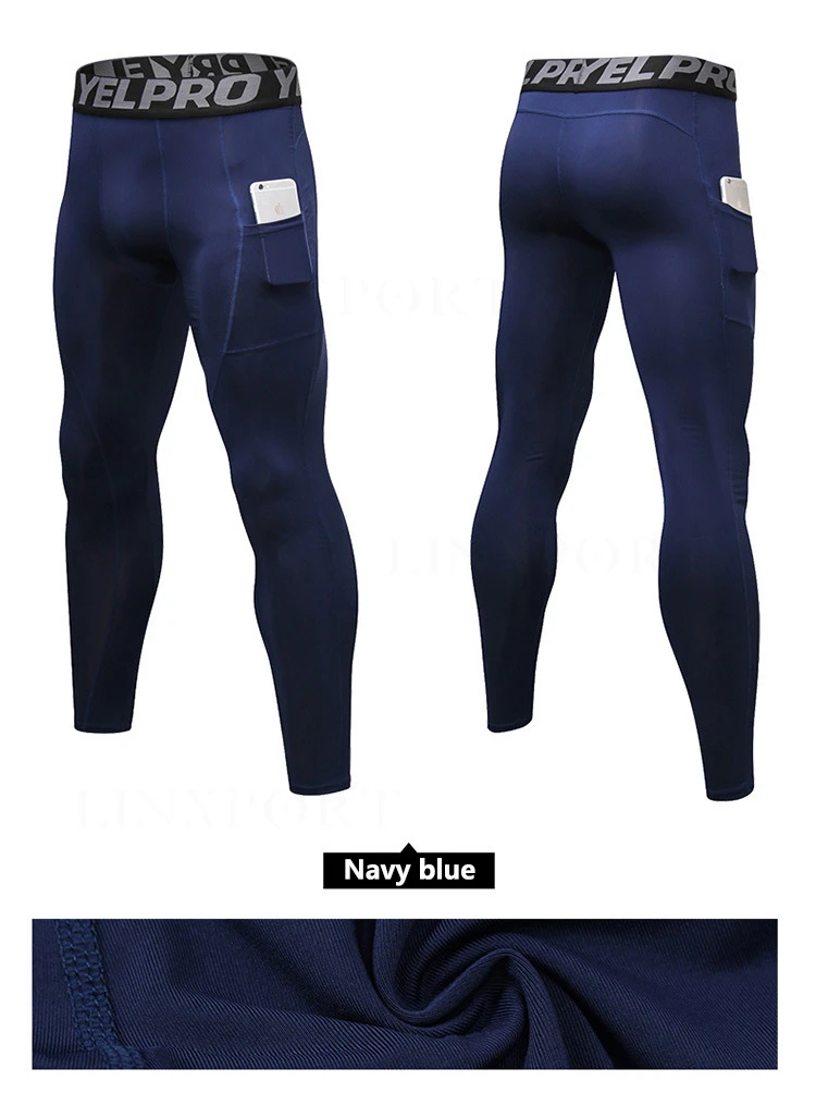 Быстросохнущие эластичные компрессионные штаны для бега с карманами...