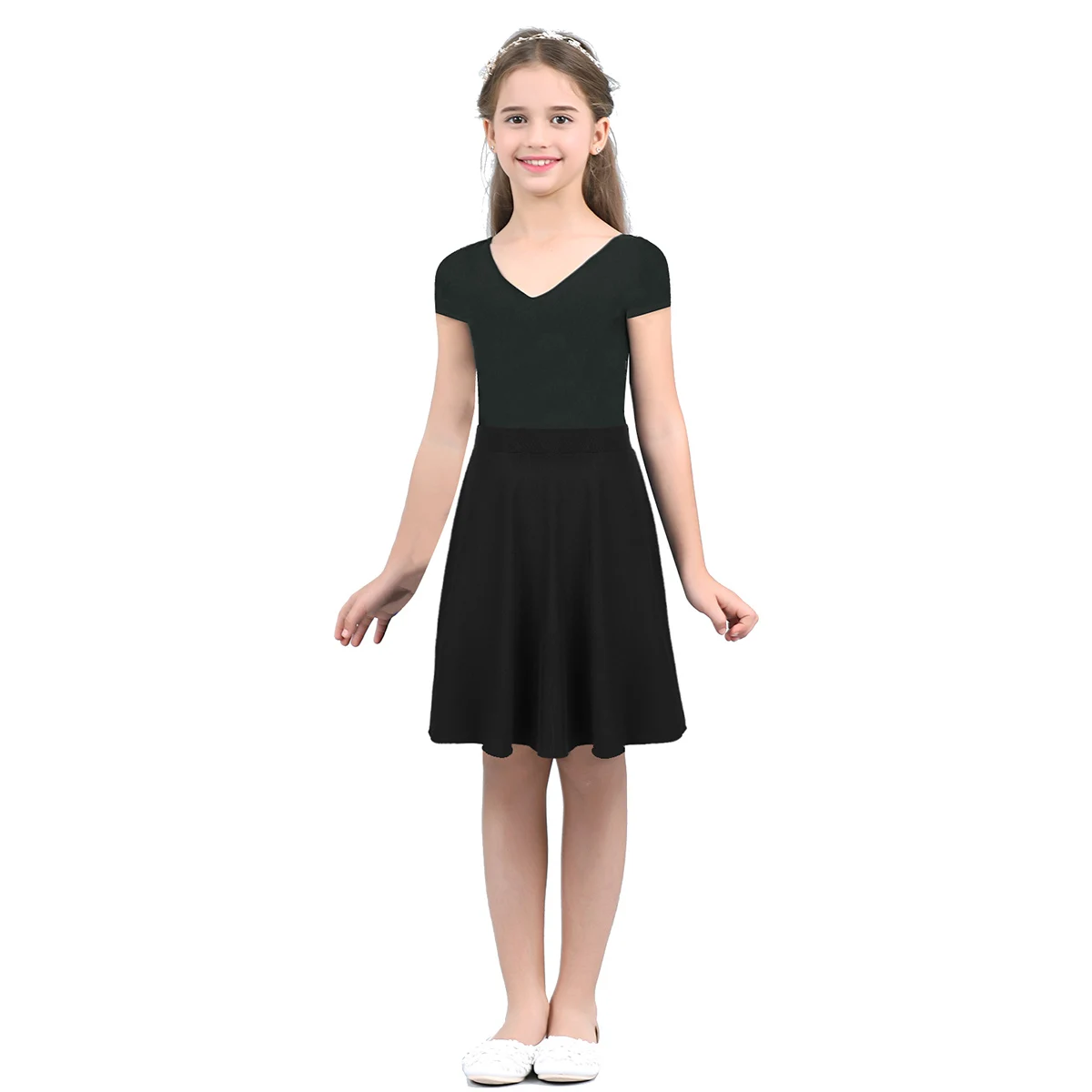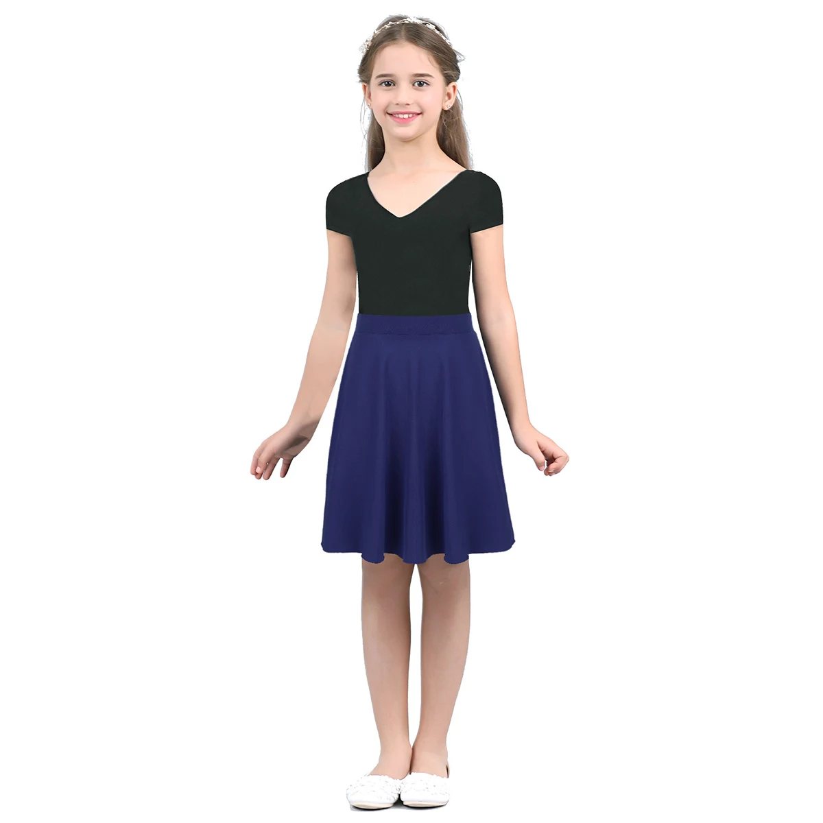 Для девочек-подростков с коротким и широким подолом одноцветная бальная юбка Цвет Легкий эластичный по колено трапециевидной формы юбки для детей подросткового возраста, Повседневные Вечерние танцевальный костюм юбка