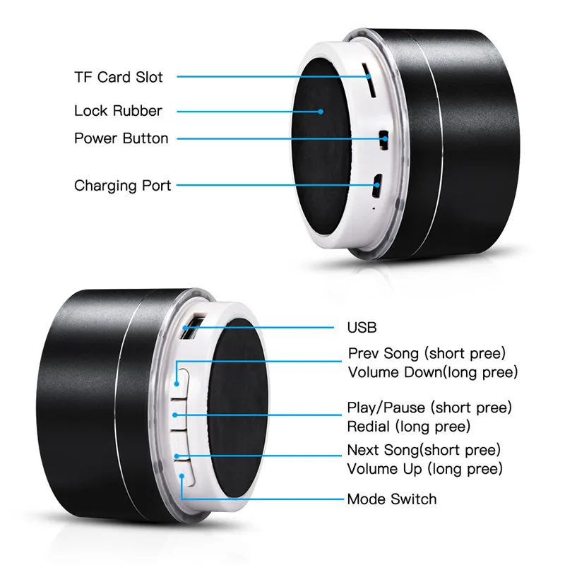 Спецификация: Совместим с: MP3, TF/Micro SD картой Поддержка: Bluetooth, беспроводные звонки, громкоговоритель, микрофон, воспроизведение музыки с tf-картой Функция s: функция AUX, трек песни Интерфейс: микрофон, мини USB, слот для tf-карты Bluetooth: Bluetooth V2.1 Сопротивление динамика: 4 Ом Расстояние передачи: с/о препятствия 10 м Выходная мощность: 3 Вт Freq: 20 Гц-20 кГц Емкость аккумулятора: 400 мАч Время зарядки: около 2 часов Время работы: средний объем 2-3 часа Тип батареи: литий-ионный аккумулятор Рабочее напряжение: DC3.7V-4.2V Мощность: 4Ω 3 Вт Цвет: синий, розовый, белый, зеленый, желтый