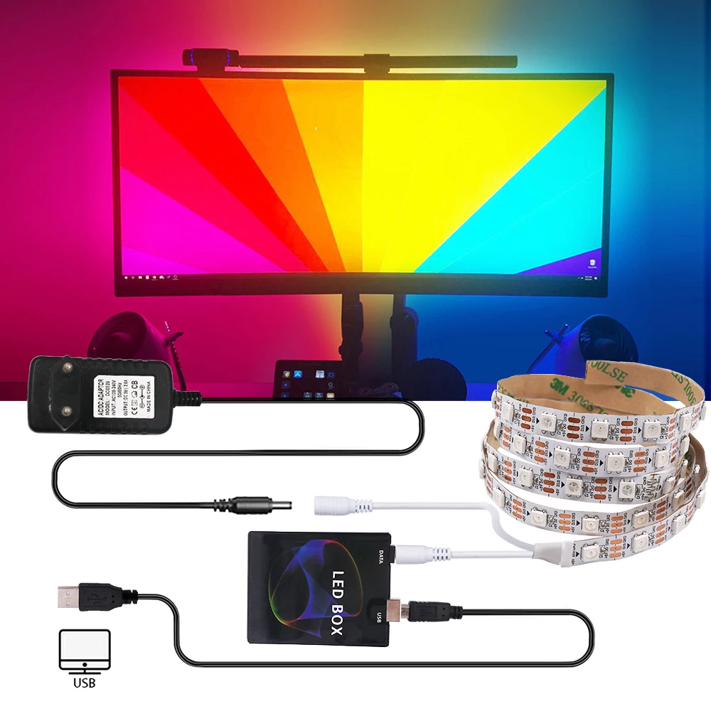 5 в WS2812B USB Светодиодная лента 5050 RGB Dream цветной контроллер окружающей среды с питанием ТВ комплект для ПК подсветка экрана 1 м 2 м 3 м 4 м 5 м