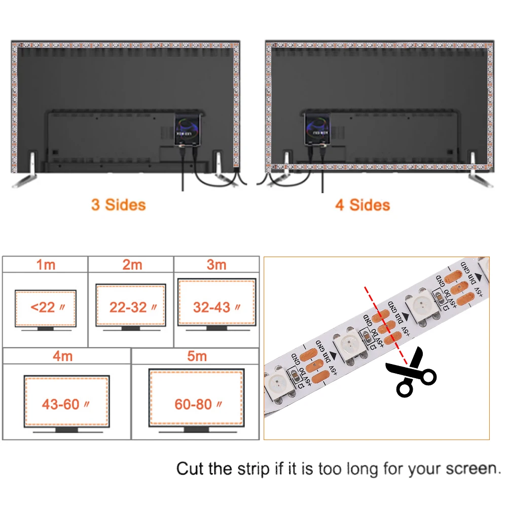 2. Светодиодная лента работает только после установки на телевизор или ПК. Если только несколько светодиодов загораются. Это не проблема качества!