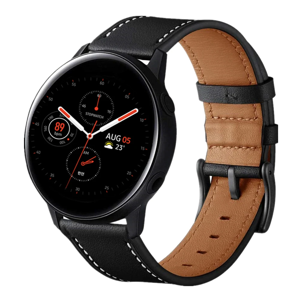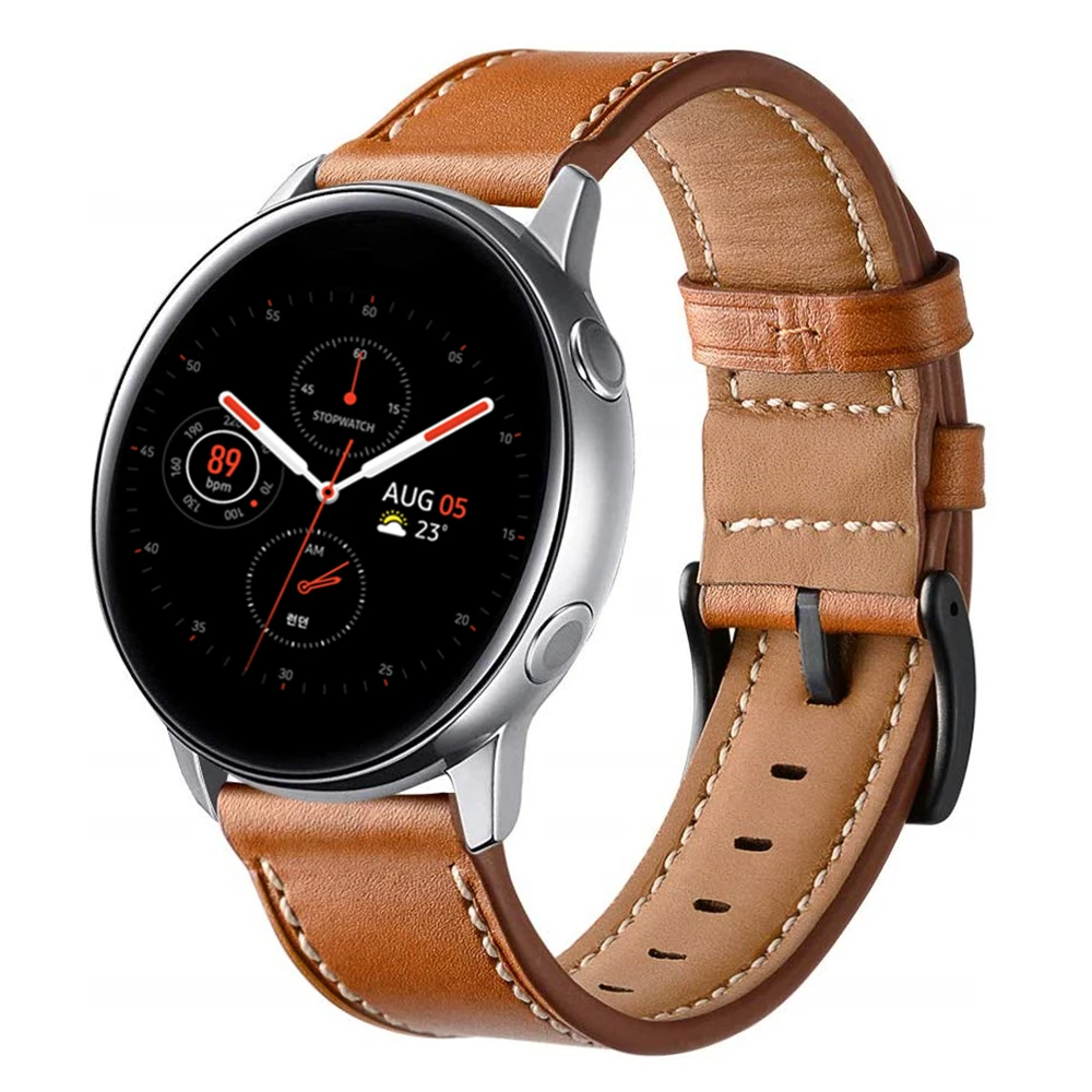 Ремешок из натуральной кожи для Samsung Galaxy Watch 42 мм Active 2 40 мм 44 мм, сменный Браслет для спортивных смарт-часов, 20 мм