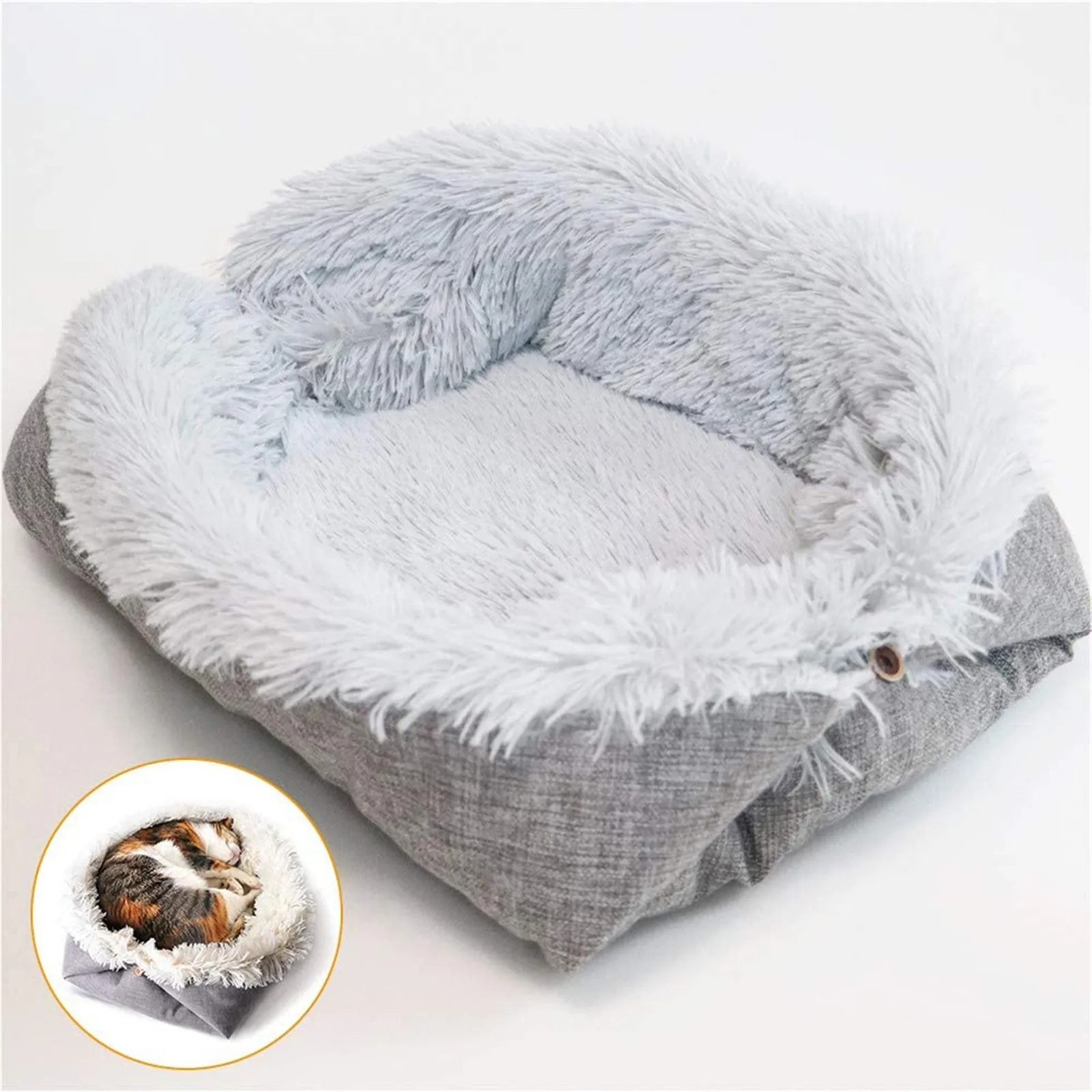 2. Двухцелевое гнездо для домашних животных, откидная плюшевая подушка для домашних животных, легко складывается в кровать