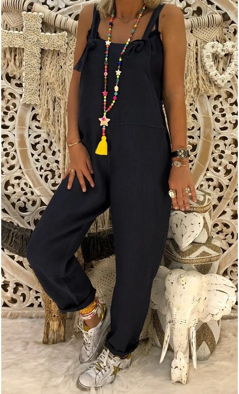Комбинезон женский, из хлопка и льна, свободный, с длинными штанами