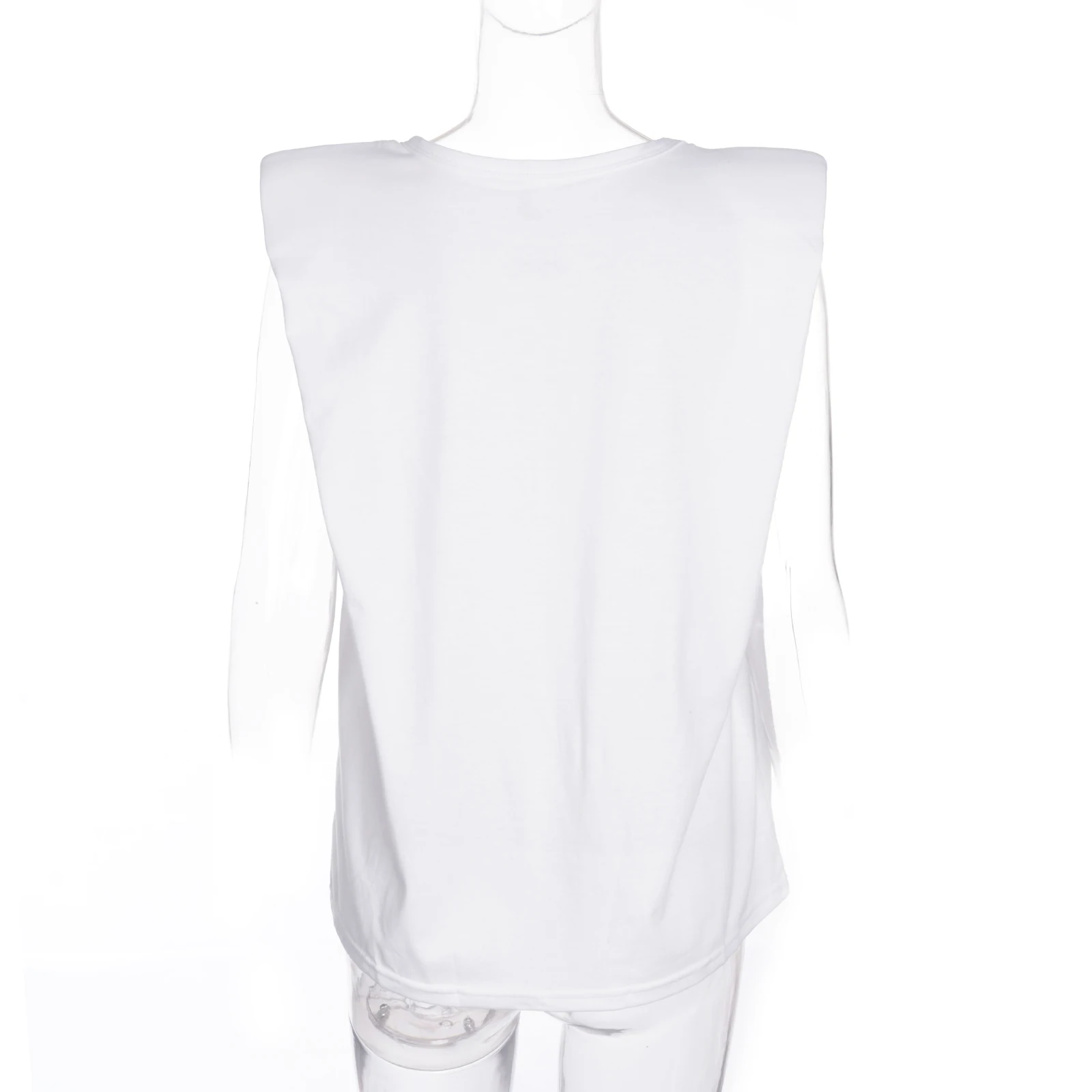 Модная элегантная свободная футболка без рукавов с наплечниками, ст...