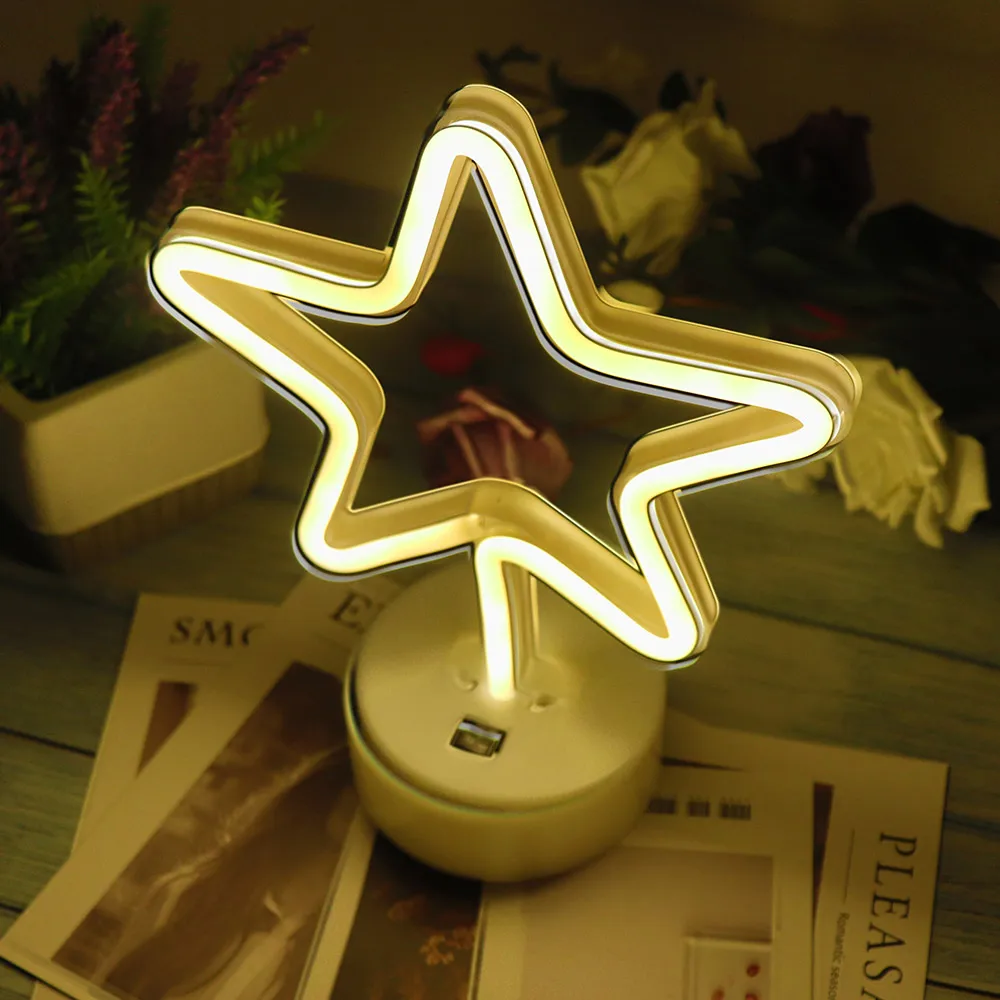 Неоновый светильник в виде звезды, Луны, светильник, USB, светодиодный ночник, украшение для дома, свадьбы, подарки, неоновая лампа с основанием