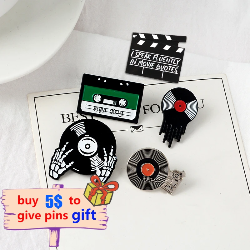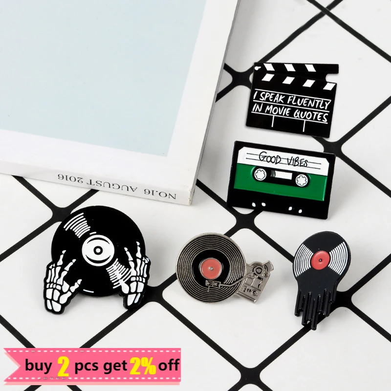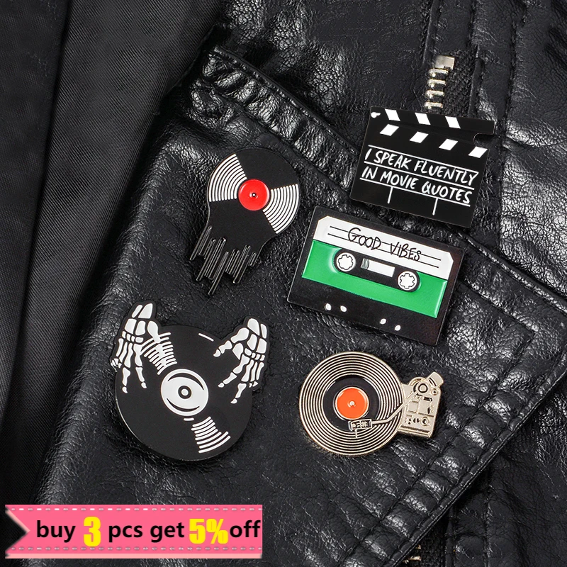 Эмалированная заколка в стиле панк для любителей музыки Good Vibes Tape DJ проигрыватель виниловых пластинок значок для сумки брошка на лацканы рубашка крутая Готическая Подарочная бижутерия