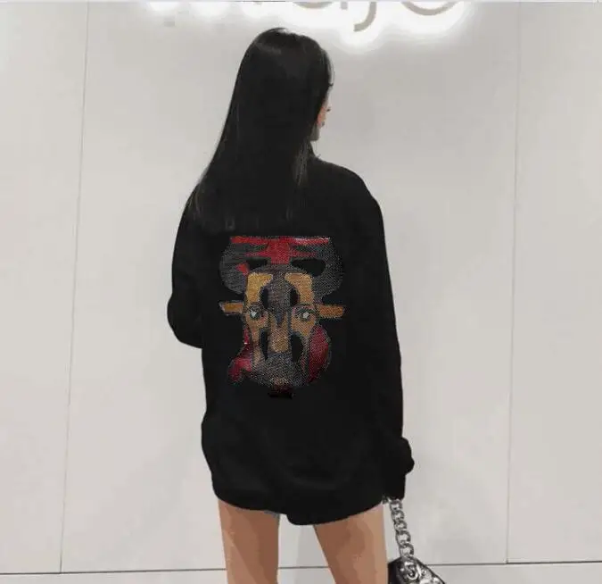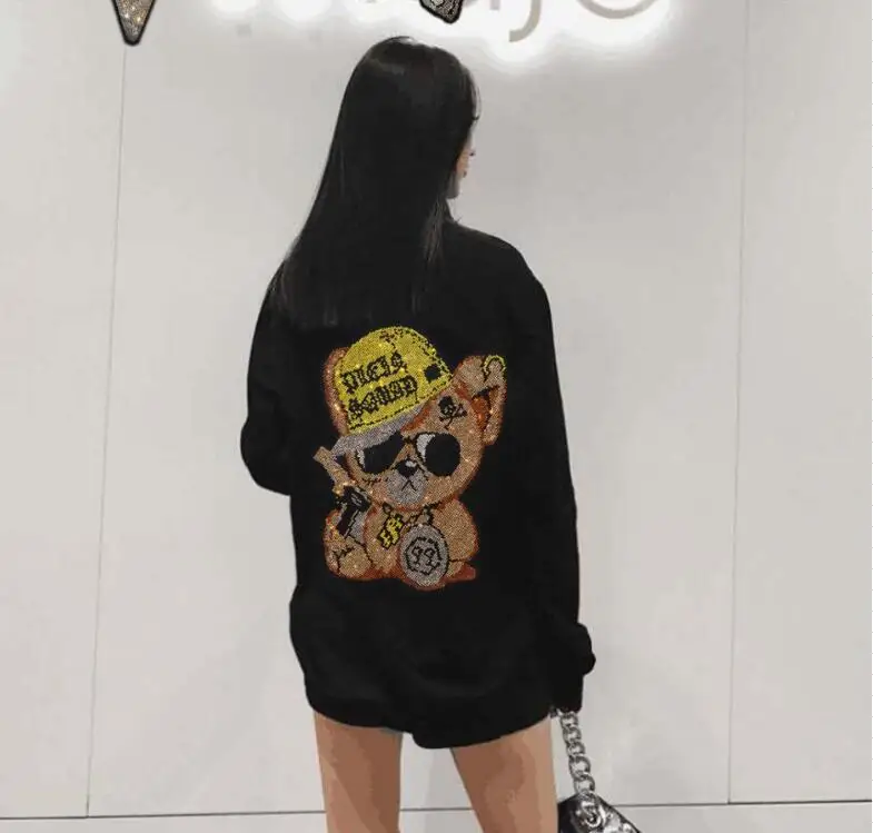 Прямая поставка, осенне-зимняя Толстовка с длинным рукавом, со стразами, модная, свободная, с круглым вырезом, топ, одежда для молодых девушек