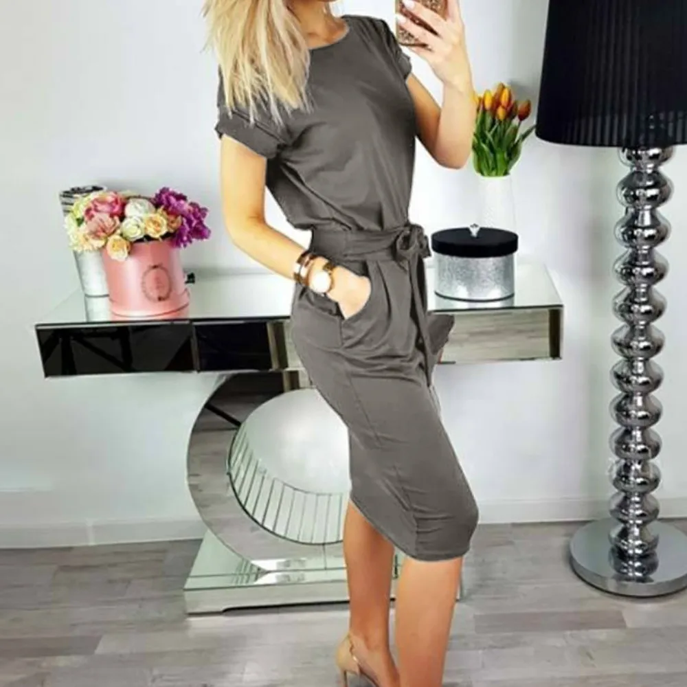 40 # женское Повседневное платье сексуальный пояс карман круглый воротник, плотная ткань, Цвет с короткими рукавами и галстуком-бабочкой вечерние мини-платье Vestido De Mulher; Туфли на каблуке