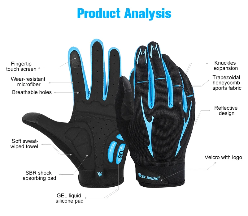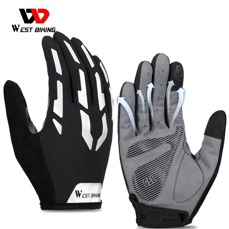 WEST BIKING велосипед дышащие спортивные перчатки Сенсорный Экран светоотражающие велосипедные перчатки мотоцикла Нескользящие перчатки снаряжение для велоспорта