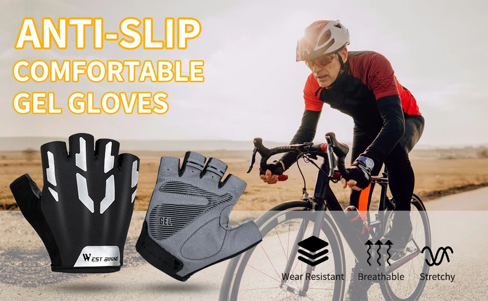 Велосипедные перчатки с закрытыми пальцами WEST BIKING, летние дыша...