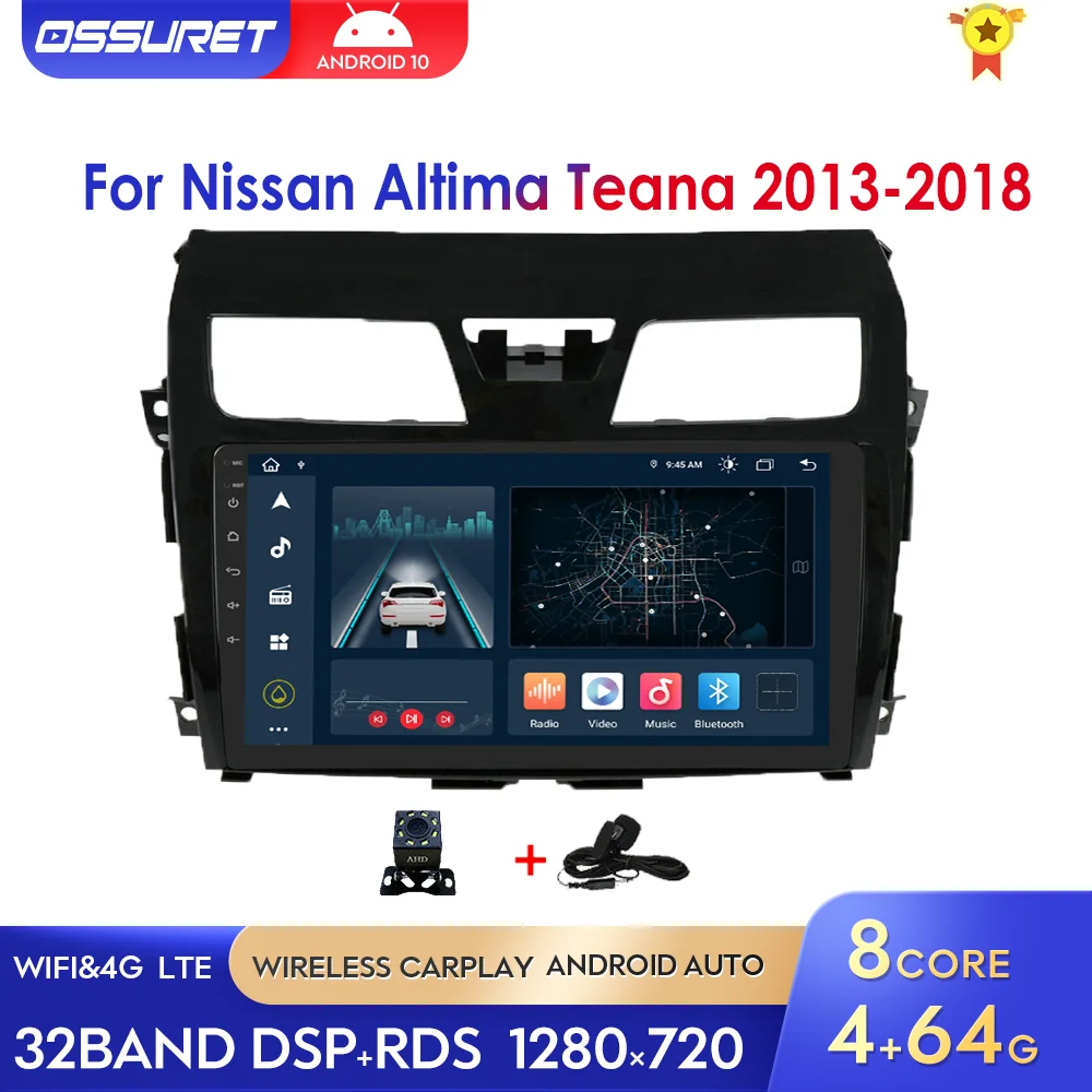 GPS-радио, стерео, мультимедиа, 4G, LTE, Android 10, четырёхъядерный, для Nissan Teana Altima 2013, 2014, 2015, Bluetooth, SWC, BT