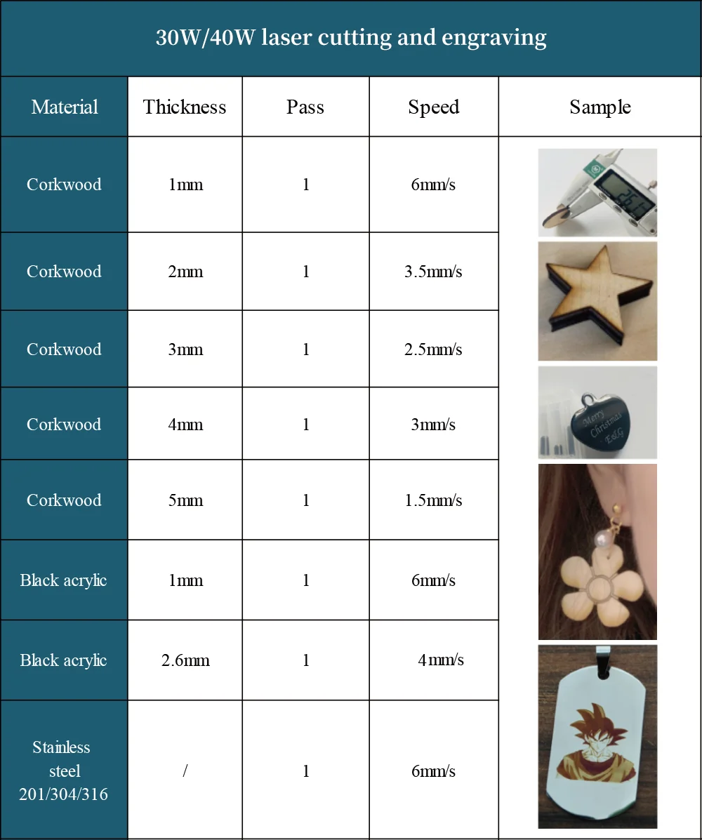 Мы предлагаем 30 Вт и 40 Вт для гравировки металла и резки древесины 1-5 мм.
