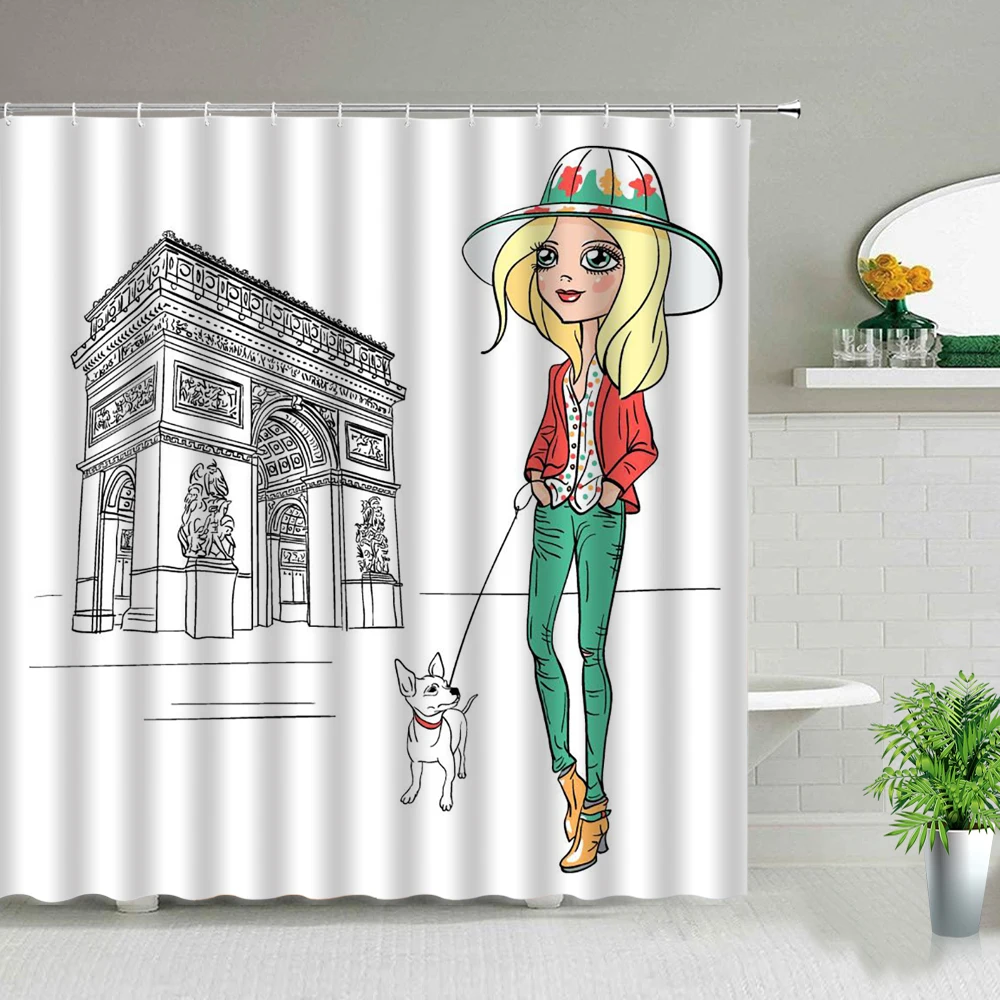 Парижская занавеска для душа, винтажная старинная историческая ново...