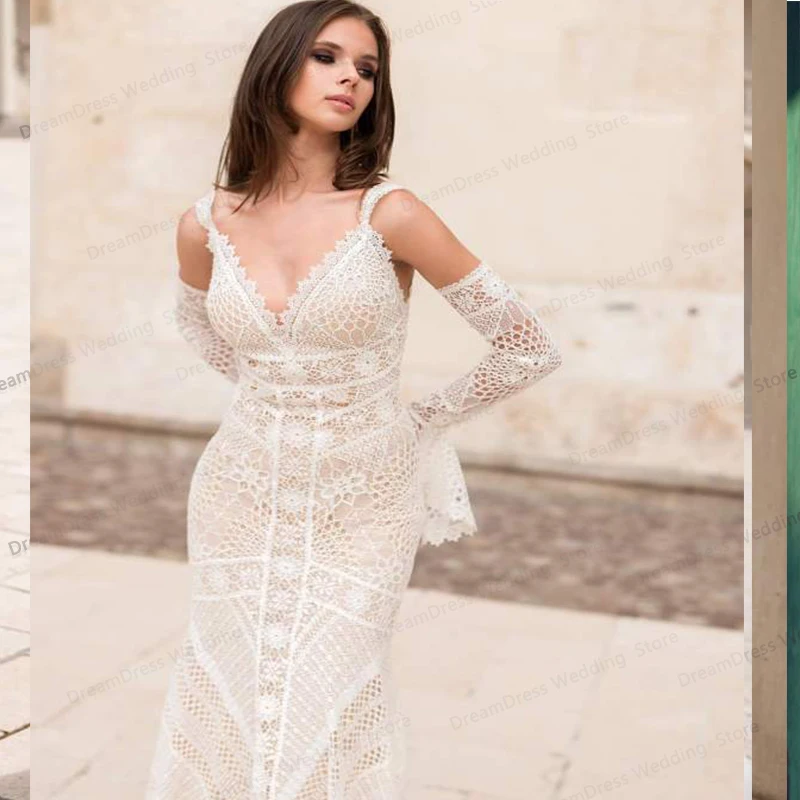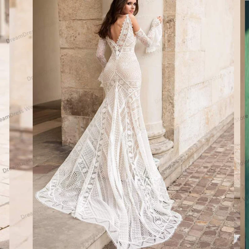 Богемное свадебное платье 2021 с длинным рукавом в стиле бохо, женское пляжное платье, винтажное кружевное свадебное платье принцессы