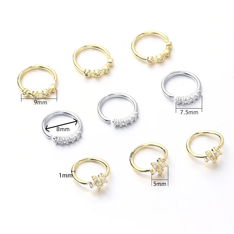 7 шт. маленькие тонкие цветок прозрачного хрусталя 5 CZ драгоценный камень кольцо-гвоздик в нос кольца-к требованиям заказчика; Сверкающие; С украшением в виде кристаллов нос кольца