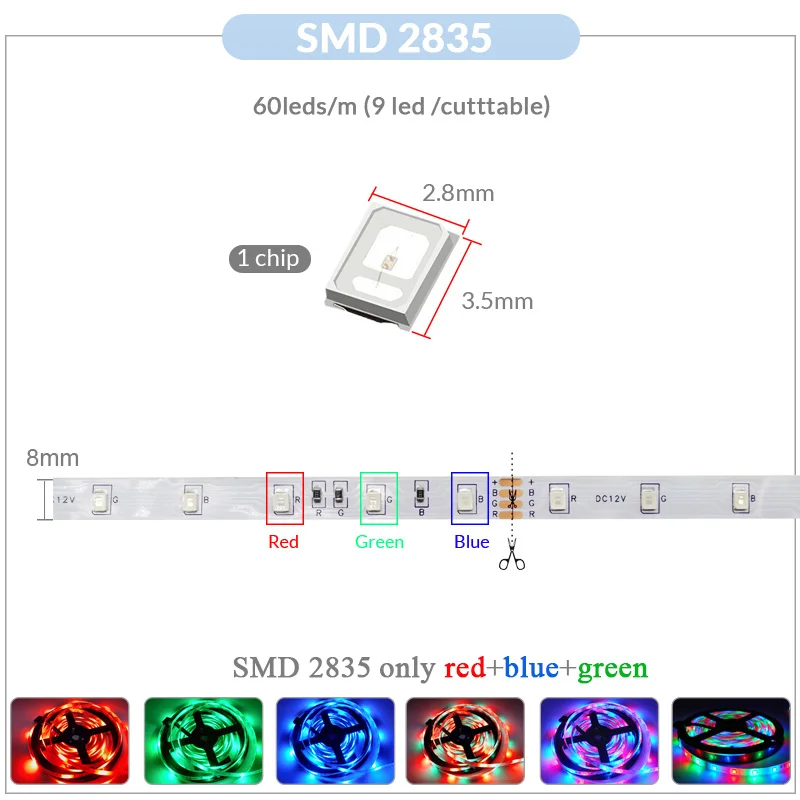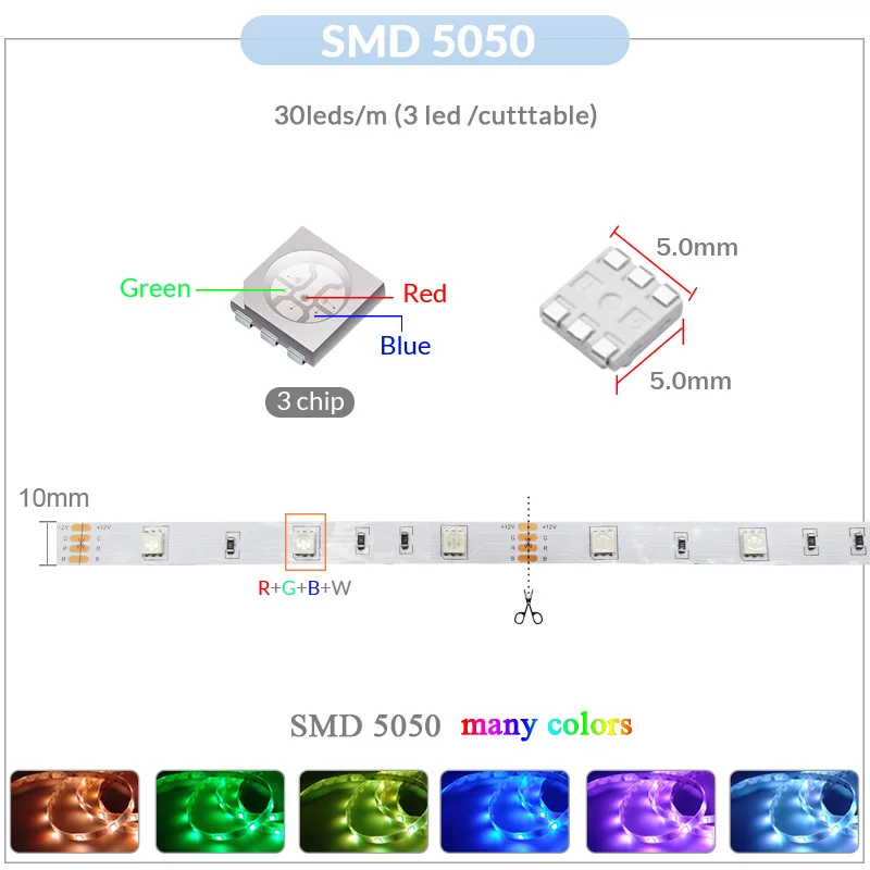 Длина светодиодной ленты:5 м/рулон, 10 м/рулон (выбирается случайным образом персоналом склада)