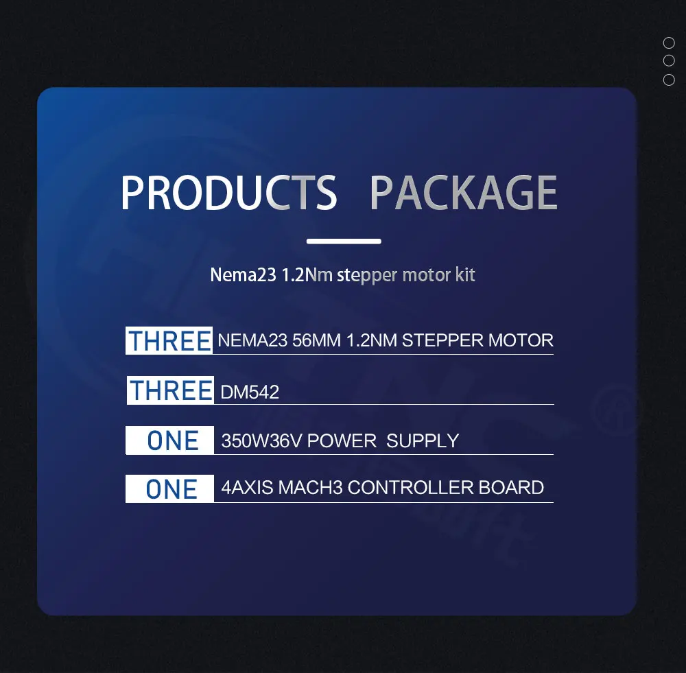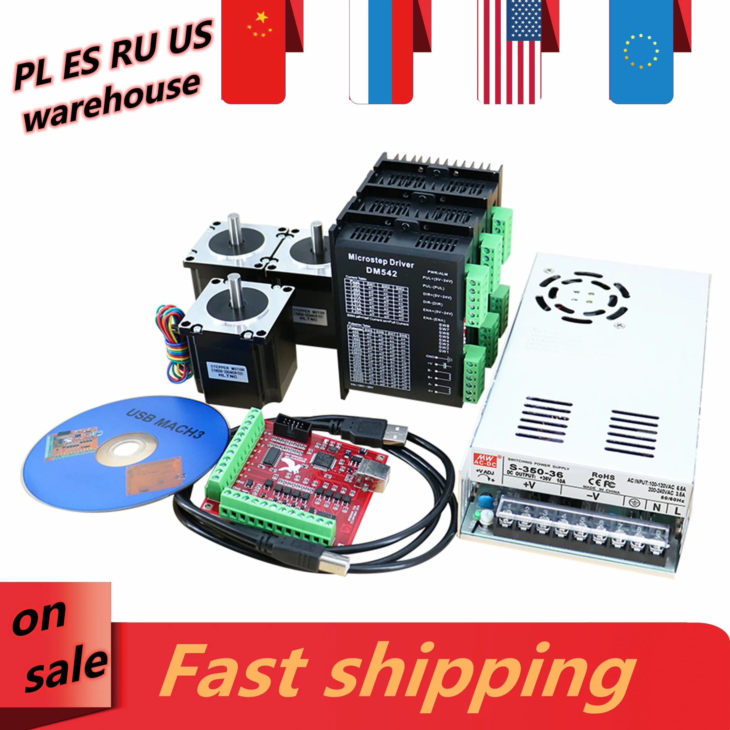 3-осевой комплект шагового двигателя Nema23 включает 3 двигателя 1,2 нм + 3 микрошаговых драйвера DM542 + 1 блок питания + карта контроллера mach3